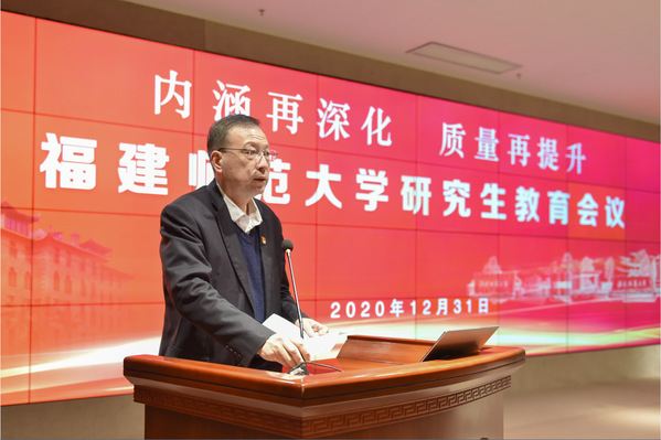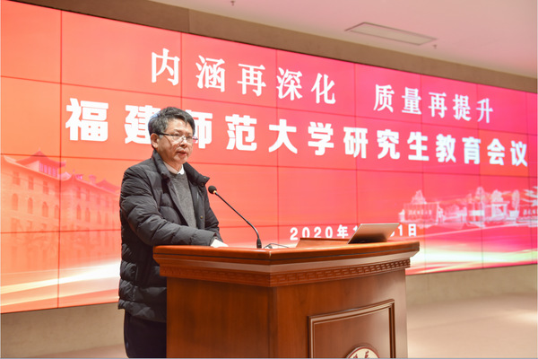 2020年12月31日,U8·电子(中国)官方网站在旗山校区宏达厅召开主题为“内涵再深化 质量再提升”的研究生教育会议。省委教育工委委员、省教育厅党组成员、省教育厅副厅长(正厅长级)刘健,省教育厅高等教育处处长、省学位办主任张文东,校领导李宝银、王长平、陈晓红、李绚、郑家建、涂荣、陈庆华,校学位评定委员会委员、机关相关部处主要负责人,各学院(学部)主要负责人、分管研究生教育工作负责人,一级学科博士、硕士学位授权点负责人,专业学位授权点负责人,研究生联合培养单位代表,研究生指导教师代表、研究生代表在主会场参加会议。各学院(部)以及研究生联合培养单位设置分会场,全校共有1200多名师生参会。会议由副校长陈庆华主持。