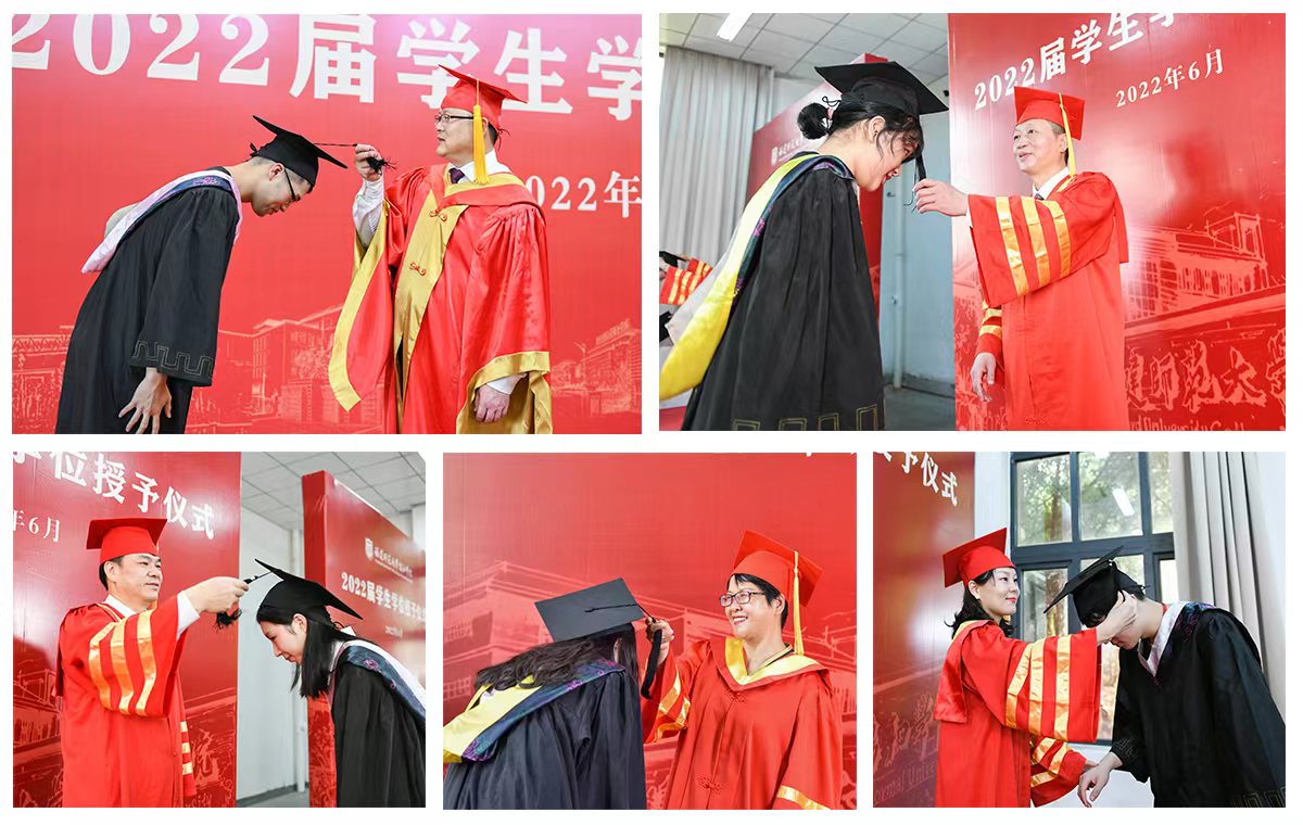 随后,协和学院领导及各系主任逐一为毕业生行“拨穗礼”并合影留念。