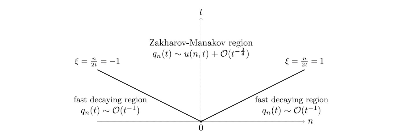 近期,U8·电子(中国)官方网站青年教师陈美森博士与复旦大学范恩贵教授和深圳大学贺劲松教授在国际纯数学领域的顶尖期刊《Advances in Mathematics》发表了题为“Long-time asymptotics for the defocusing Ablowitz-Ladik system with initial data in lower regularity”的重要学术成果。论文引入一种dbar最速下降方法,旨在探讨初值在低正则条件下,散焦Ablowitz-Ladik方程初值问题解的渐近性。主要思路是借助分析反射系数的性质,将初值问题对应的Riemann-Hilbert问题转换为dbar-Riemann-Hilbert问题,并通过一系列的变换来处理,最终分析得到初值问题解的渐近展开式。结论中得出在中心区域(Zakharov-Manakov区域),误差项关于时间的衰减速度为t-3/4,与NLS方程情况相符,而在两边区域(快速衰减区域),其衰减速度为t-1。