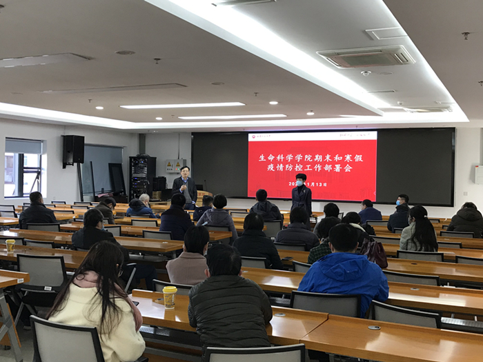 近日,生命科学学院在理工13#6楼学术报告厅召开期末和寒假疫情防控工作部署会,院领导叶萍、欧阳松应、吴志锋,各科研实验室(平台)、各科室负责人,相关研究生导师和全体辅导员参加了会议。
