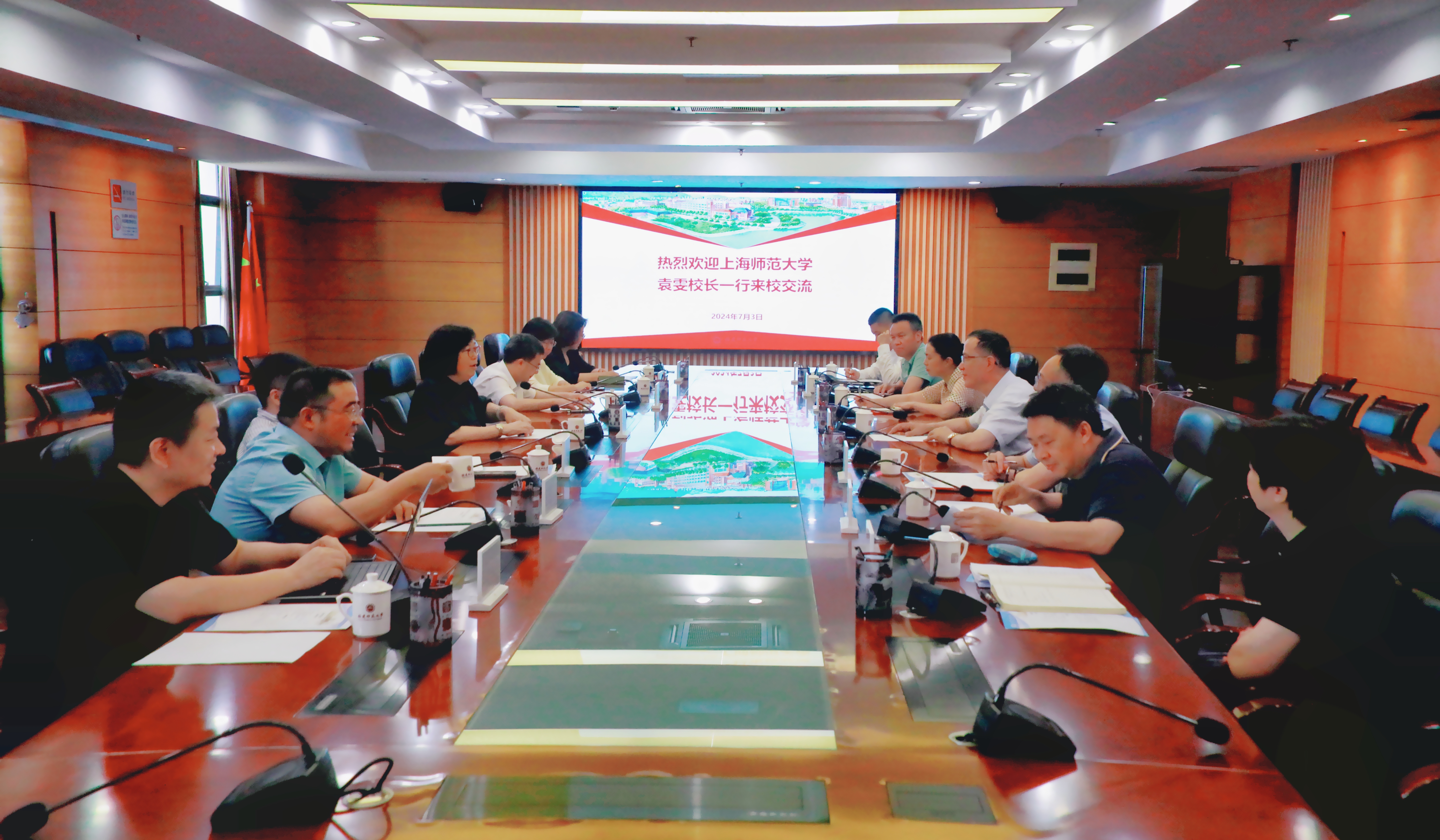 7月3日,上海师范大学校长袁雯、副校长李晔一行来校调研交流。校长王长平,党政办公室、组织部、教务处、发展规划处、人事处、研究生院等相关职能部门负责人参加了座谈会。