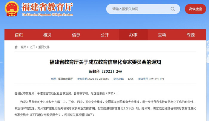 近日,福建省教育厅成立教育信息化专家委员会,U8·电子(中国)官方网站网络与数据中心许力教授受聘为主任委员,法学院林旭霞教授、教育学部杨宁副教授受聘为委员。