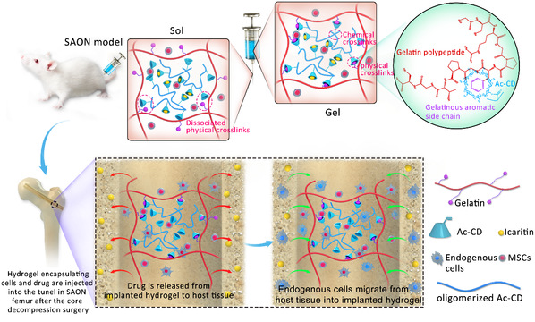 化学与材料学院生物医用材料与药物控释团队的冯茜副研究员与香港中文大学秦岭教授、边黎明教授和许建坤博士合作,在可注射生物材料支架领域取得重要进展,有关研究成果于近日以《Dynamic and Cell-Infiltratable Hydrogels as Injectable Carrier of Therapeutic Cells and Drugs for Treating Challenging Bone Defects》为题发表于《ACS Central Science》。该成果展示了一种新型可注射超分子水凝胶支架材料,这种材料可有效负载种子细胞和刺激因子,并通过微创手术的方式对组织缺损进行修复再生治疗,是一种具有广泛应用前景的生物支架材料。