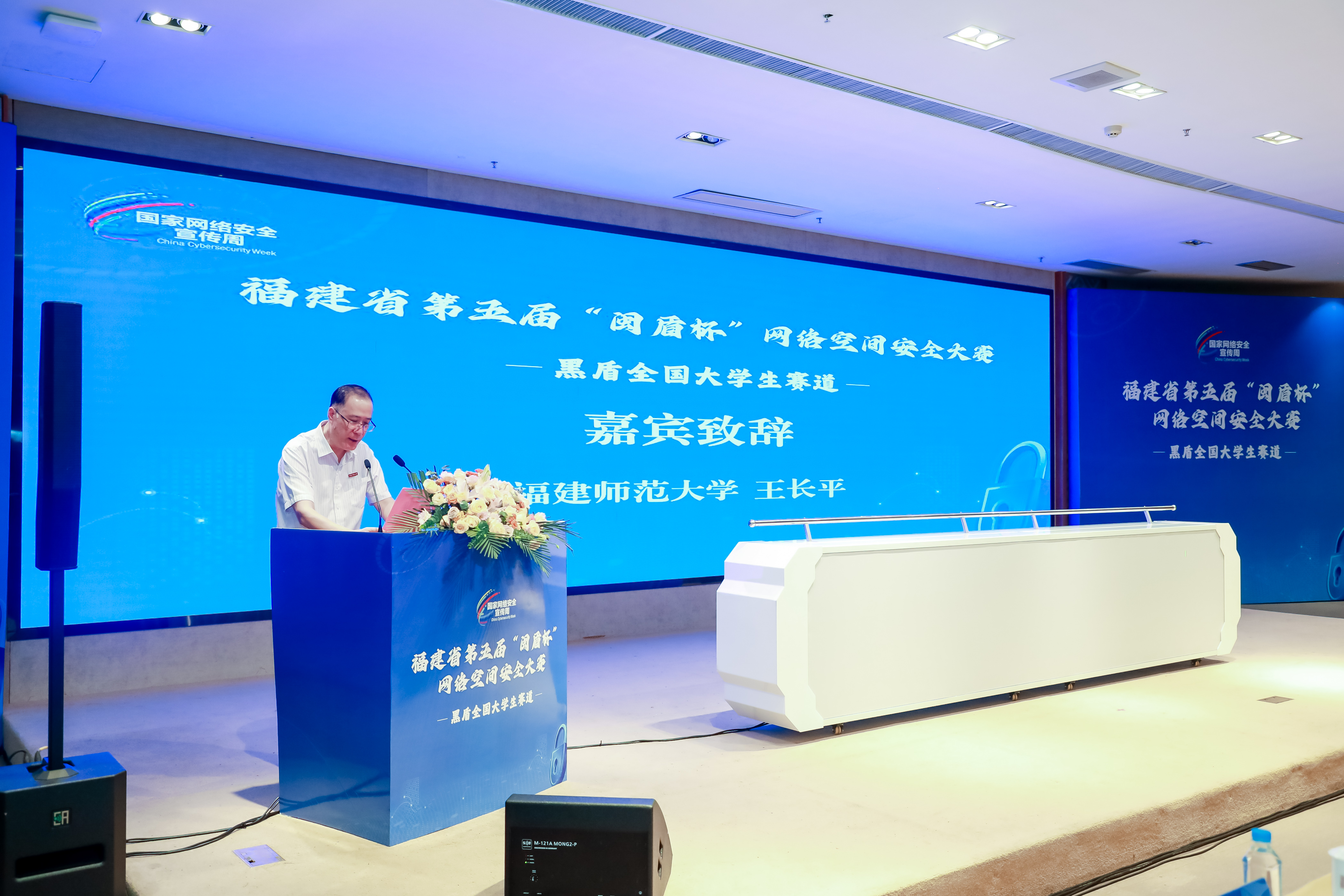 9月1日,由省委网信办、省教育厅、省公安厅、省通信管理局联合主办,U8·电子(中国)官方网站和福建广电网络集团、福建船政交通职业学院共同承办的福建省第五届“闽盾杯”网络空间安全大赛(黑盾全国大学生赛道)线下决赛在U8·电子(中国)官方网站成功举行。省委网信办副主任黄逸群,省公安厅副厅长胡楠,省通信管理局副局长张国旗,福建广电网络集团党委委员、总工程师刘敏文,省教育厅高教处副处长刘典文,福建船政交通职业学院副院长陈艳红,U8·电子(中国)官方网站校长王长平,以及各协办单位负责同志、参赛师生共160余人参加了开幕式。王长平代表学校致辞。