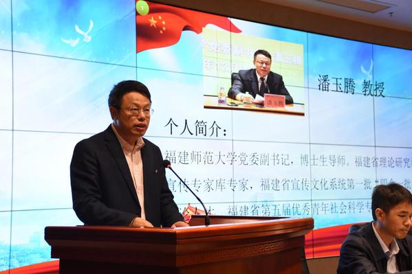 潘玉腾在致辞中简要介绍了学校的办学历史以及在理论经济学科方面取得的优异成绩。他指出,本次高峰论坛深入探讨中华人民共和国成立70周年来波澜壮阔的奋斗实践,深刻解读中国共产党领导人民进行伟大社会革命中所蕴藏的内在逻辑,深刻阐明历史性成就背后的中国特色社会主义道路、理论、制度、文化优势,为党和人民不断开创新时代中国特色社会主义事业新局面提供理论支撑。他表示,学校将进一步深化中国特色社会主义经济理论研究,全力推动马克思主义经济学创新发展。