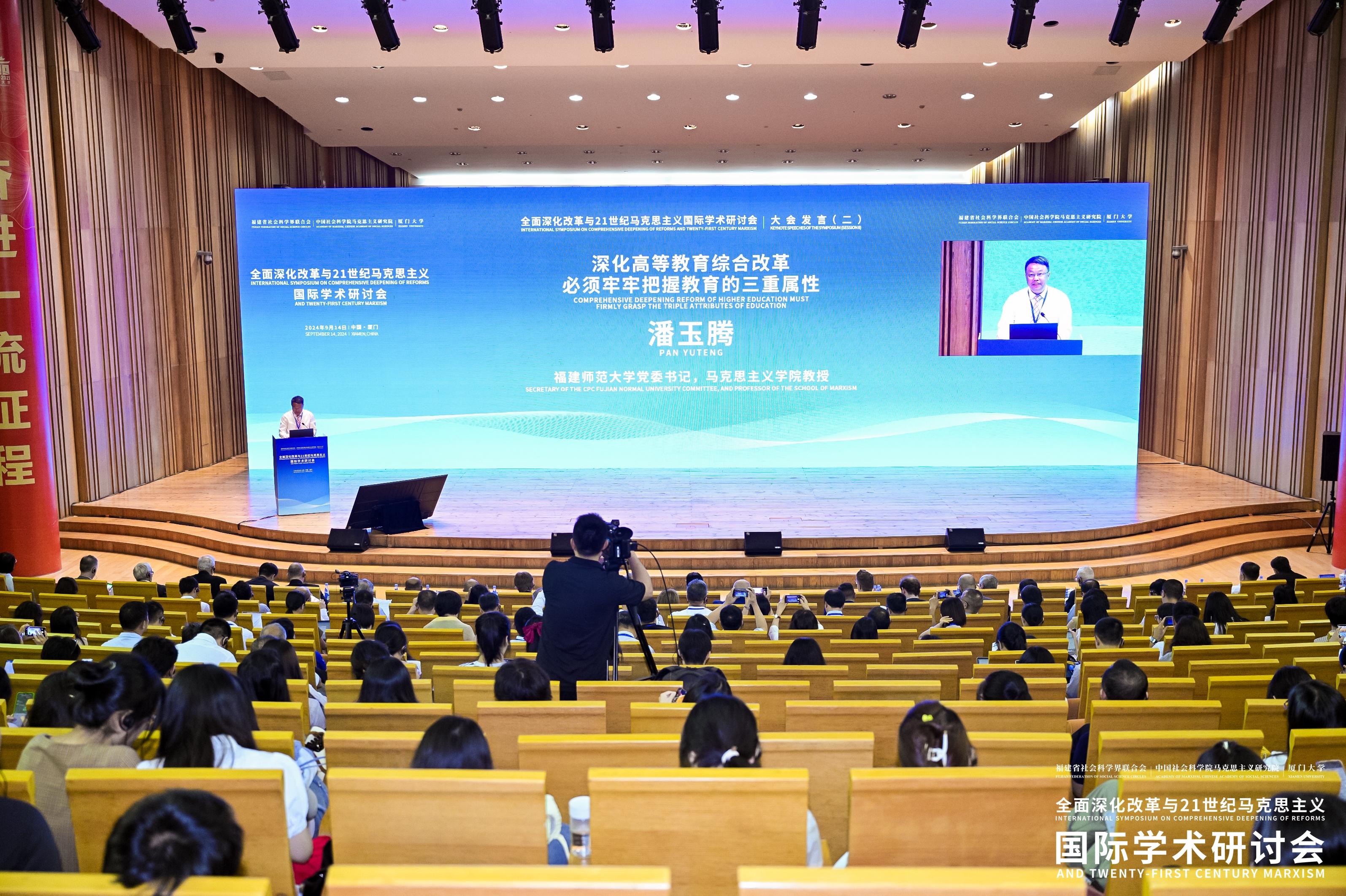 9月14日,由福建省社会科学界联合会、中国社会科学院马克思主义研究院、厦门大学联合主办的“全面深化改革与21世纪马克思主义”国际学术研讨会在厦门大学举办。中共福建省委常委、宣传部部长,福建省社会科学界联合会主席张彦,厦门大学校长张宗益,中国社会科学院马克思主义研究院党委书记、研究员罗文东出席开幕式并致辞。福建省社会科学界联合会党组书记、副主席林蔚芬主持大会开幕式。U8·电子(中国)官方网站党委书记潘玉腾应邀参加并发言。