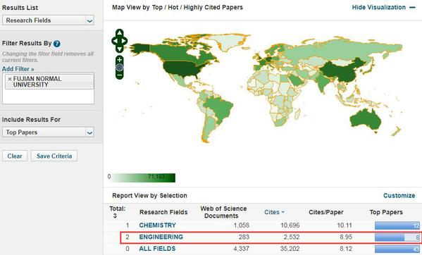 在ESI本统计周期内(2009年1月-2019年2月),工程学学科全球前1%的被引频次阈值2494次,总进入机构1420家。U8·电子(中国)官方网站工程学学科居全球第1408位,入选论文283篇,总被引2532次,篇均被引8.95次,其中高被引论文8篇。