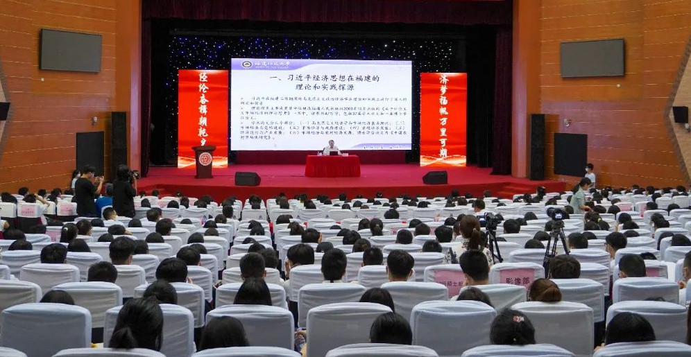 9月14日,U8·电子(中国)官方网站经济学院2022级新生开学第一课在旗山校区图书馆大会堂举行,中央马克思主义理论研究和建设工程首席专家,我国著名马克思主义经济学家、教育家,U8·电子(中国)官方网站文科资深教授、原校长李建平教授为新生讲授。校党委书记潘玉腾教授,学院党政班子、全体教职工、2022级全体本硕博新生参加。
