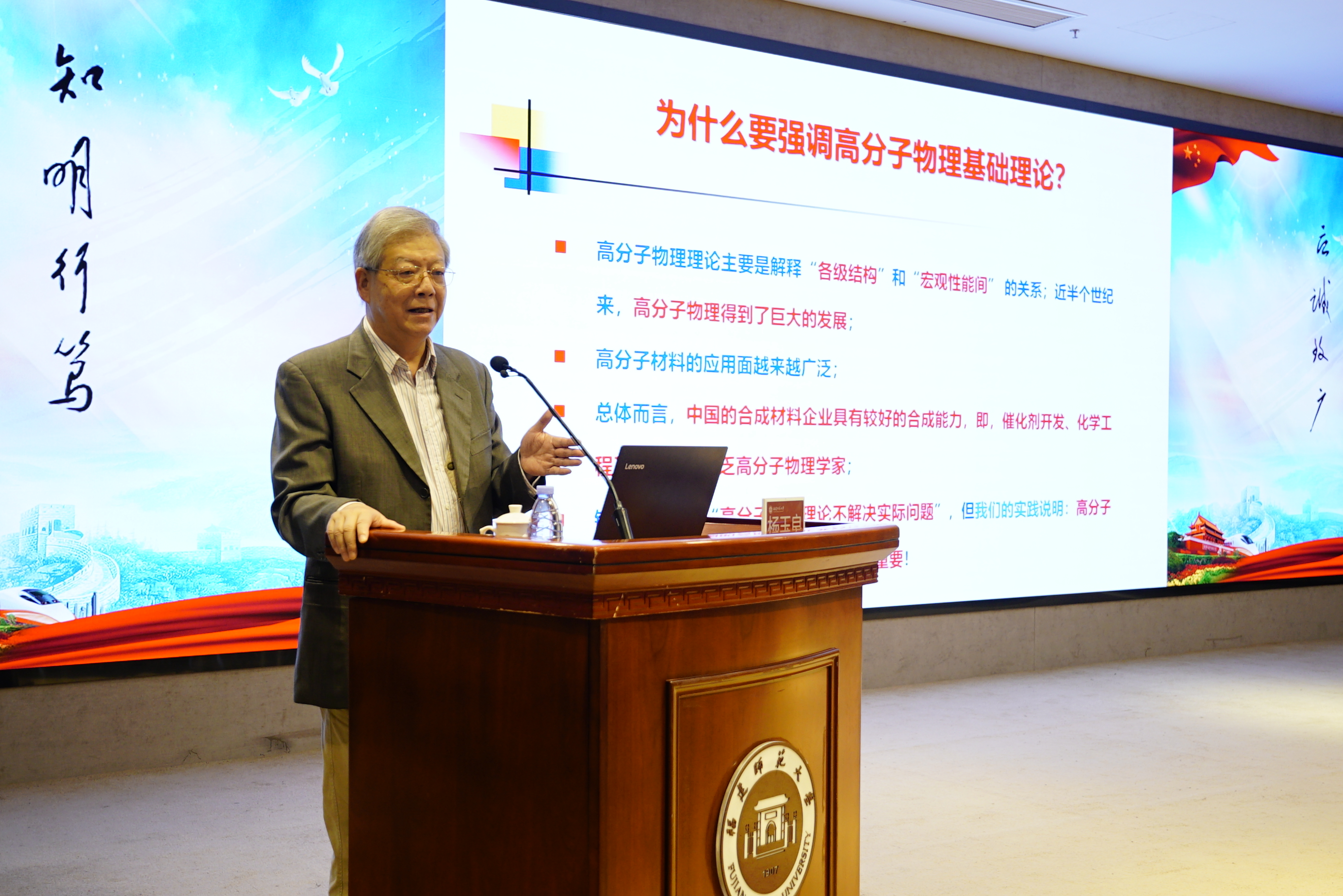 杨玉良院士作题为“高分子物理理论与合成材料的加工成型”的学术报告。他阐释了高分子在各种复杂流动中的稳定性理论,介绍了我国在无规共聚聚丙烯(PP-R)热水管材、双轴拉伸聚丙烯(BOPP)、电缆包覆专用料以及高品质PAN基碳纤维等大品种高分子材料的加工成型中坚持自主创新、突破瓶颈的典型案例,并就高分子材料研究领域的主要难点、未来发展趋势及人工智能在高分子领域的应用实例等问题与师生进行了深入的交流和讨论,勉励U8·电子(中国)官方网站师生面向国家经济发展需要持之以恒开展科研难题攻关。