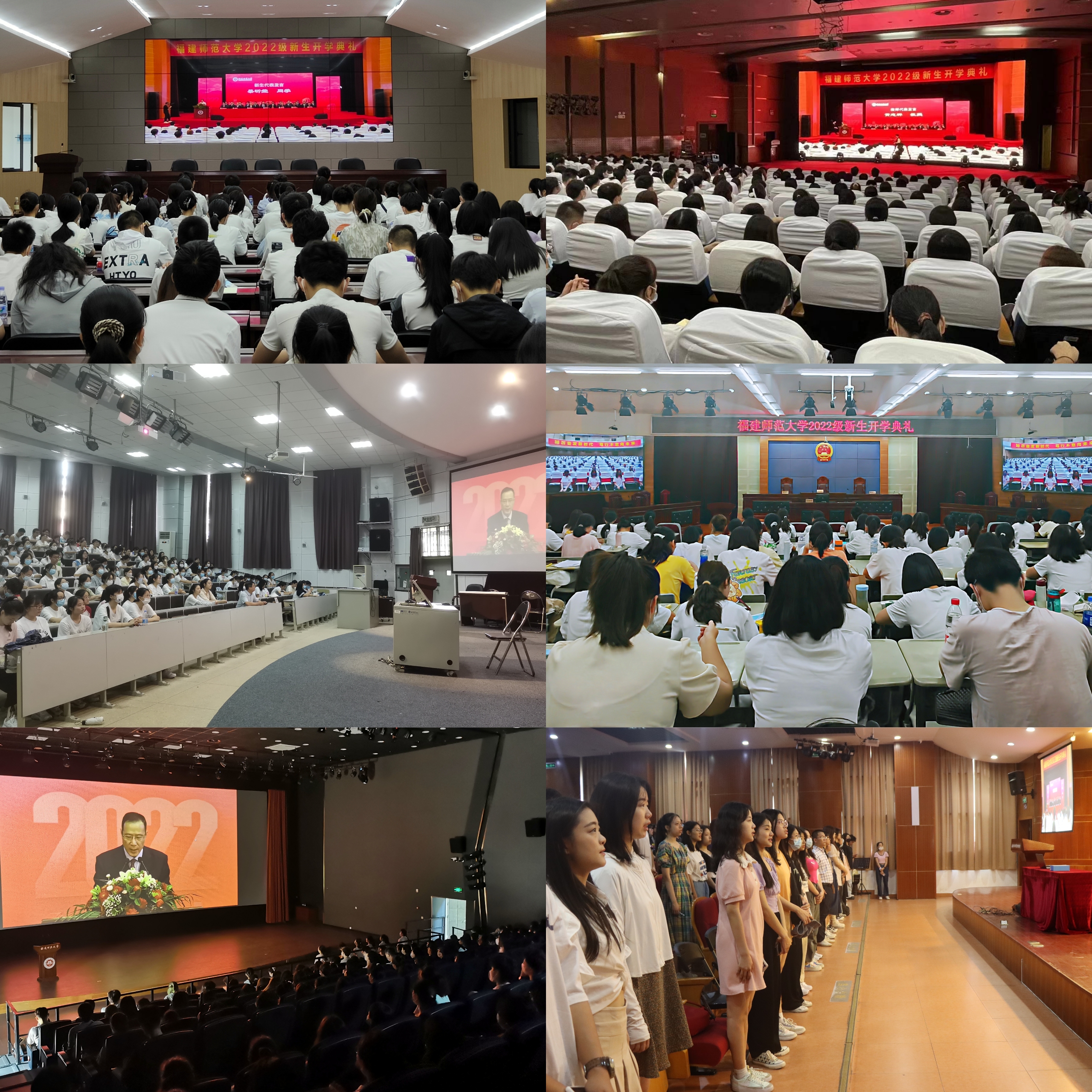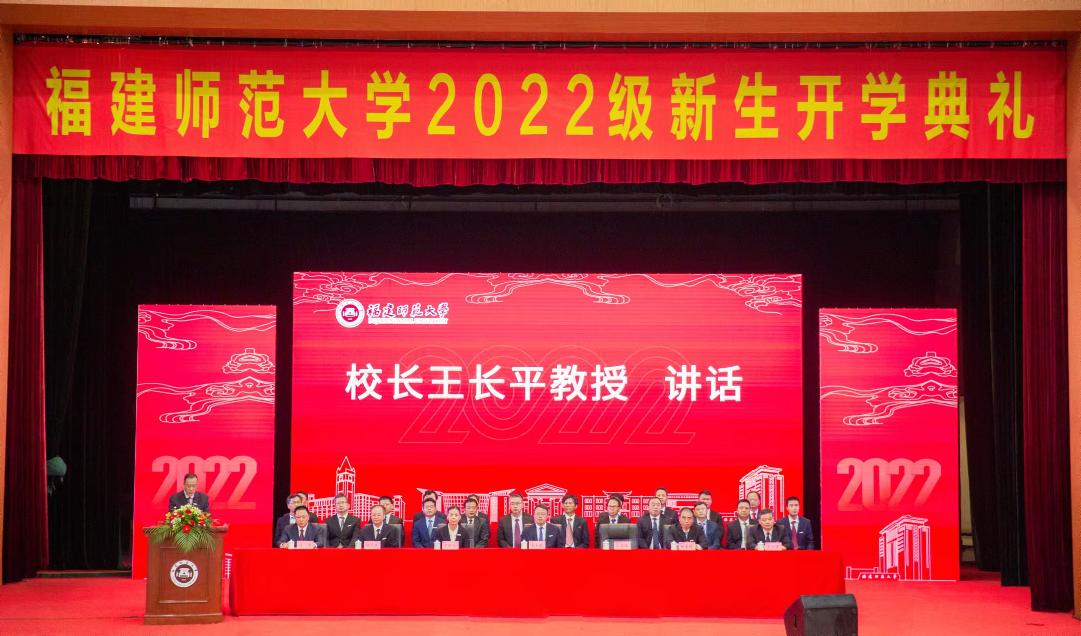 开学典礼在国歌声中拉开帷幕。校长王长平教授以“青春奋斗正当时,奋楫扬帆启新程”为题,发表了热情洋溢的致辞,他代表全校师生员工热烈欢迎2022级全体新同学加入福建师大这个“大家庭”,简要介绍了百年师大的光辉发展历程,并对2022级新生提出三点殷切希望:一是常修常炼常进步。希望同学们始终心怀“国之大者”,将个人的理想信念立于民族大义、系于时代人生,走好入学第一步,走实人生每一步,在追求“大我”中找准“小我”的人生航向,在实现中华民族伟大复兴的征程中书写属于自己的青春华章。二是苦学苦练苦钻研。希望同学们以师大前辈先贤为榜样,以百年师大的底蕴、精神和品格为引领,跳出自我“舒适区”,冲破“自我设限”的藩篱,懂得吃苦、学会吃苦、吃得了苦,在前进道路上以吃苦精神奏响不懈奋斗的最强音。三是创新创造创青春。希望同学们以深厚扎实的学养打牢创新实践的根基,以格物穷理的精神寻找成长发展的先机,以敢为人先的魄力实现引领时代的突破,在青春的赛道上跑出最好成绩,努力成为助推国家发展乃至人类进步的旗手和先锋。