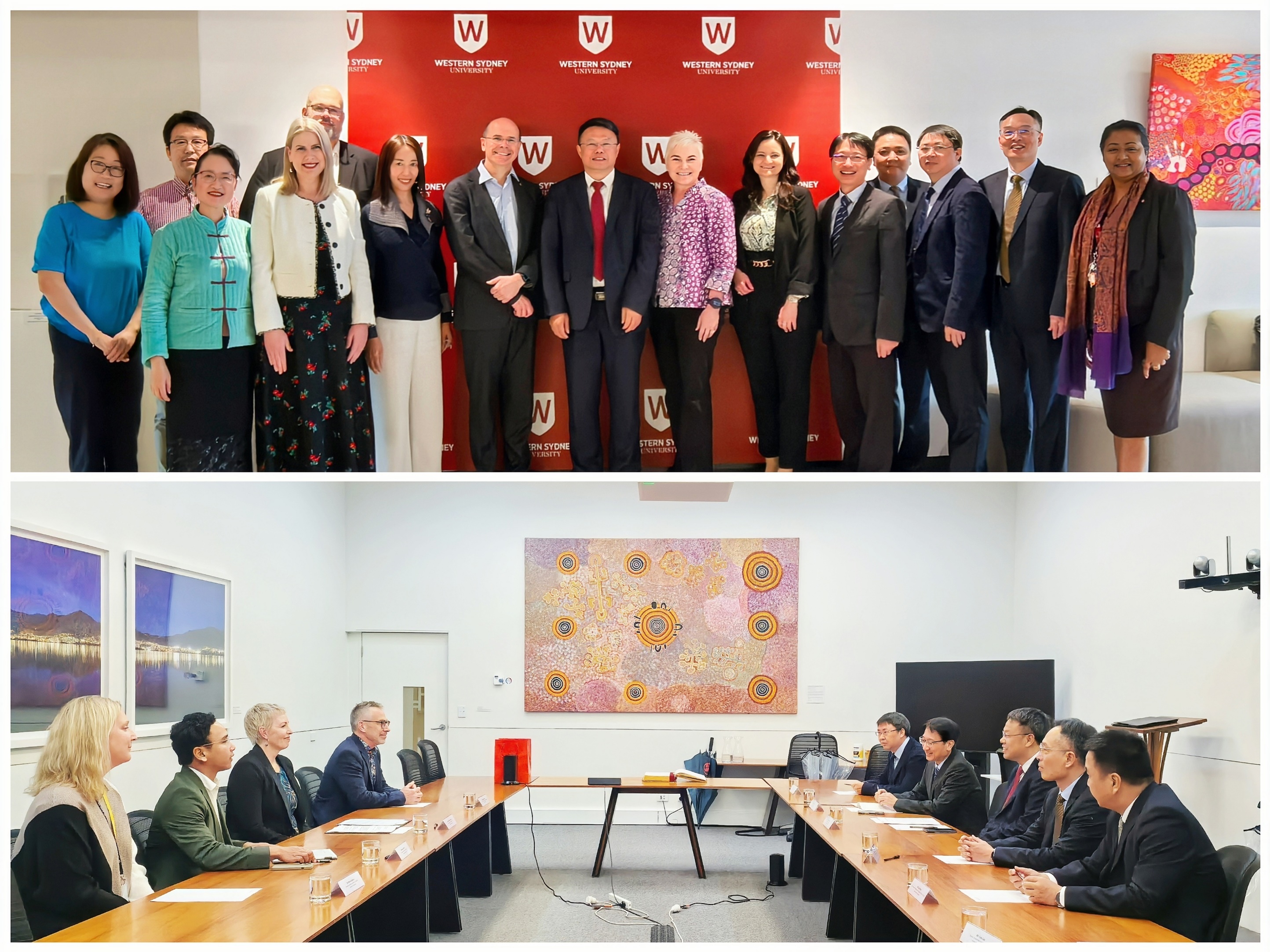 在澳大利亚,西悉尼大学校长乔治∙威廉、副校长尼科琳∙默多克对代表团的到访表示欢迎,积极评价双方合作取得的成果,表示将持续推动两校交流合作。潘玉腾表示,西悉尼大学是U8·电子(中国)官方网站重要合作伙伴之一,希望双方加强对接、深化合作,拓宽本硕联合培养项目的学科领域和办学层次,助推国际化人才培养和中澳教育文化交流创新发展。会谈期间,双方就开展师生科研实践学术交流进行讨论并达成初步共识。在塔斯马尼亚大学,代表团与国际学院院长梅拉妮·布莱恩特教授、交换生与海外研修部主任、合作伙伴与合作项目办公室主任、国际事务部主管等进行了会谈。两校合作历史悠久,其所在地友好省州关系已长达43年。双方一致同意赓续友谊、推进合作,围绕人文地理、艺术音乐、海洋及生物等领域开展各层次人才培养和跨学科创新,共同推动各项合作取得更多实质性成果。