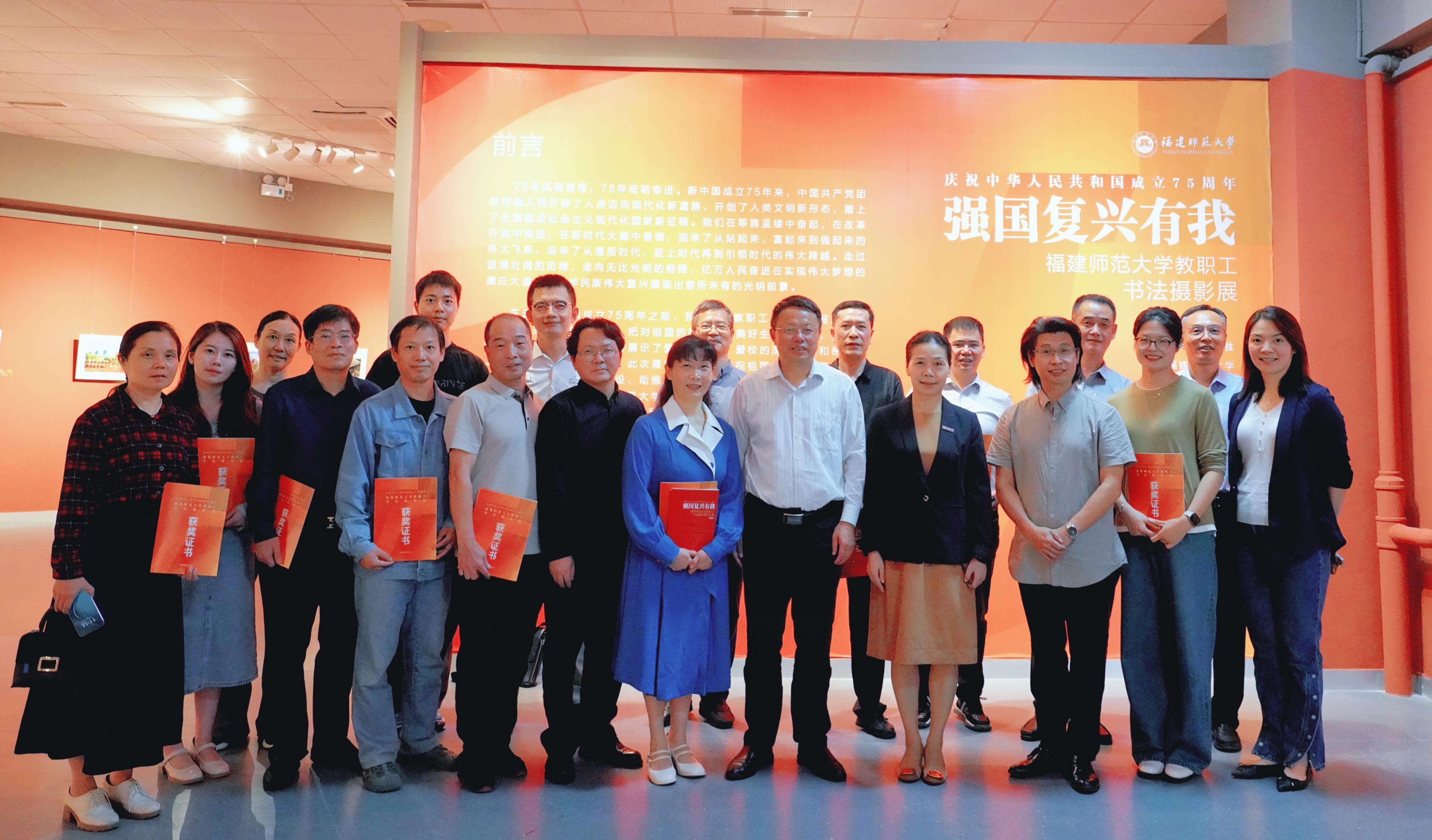 10月28日,U8·电子(中国)官方网站“强国复兴有我” 庆祝中华人民共和国成立75周年教职工书法摄影展在旗山校区举行。校领导潘玉腾、陈晓红,校工会、美术学院、各学院工会负责人,以及获奖教职工共同观看了展览。