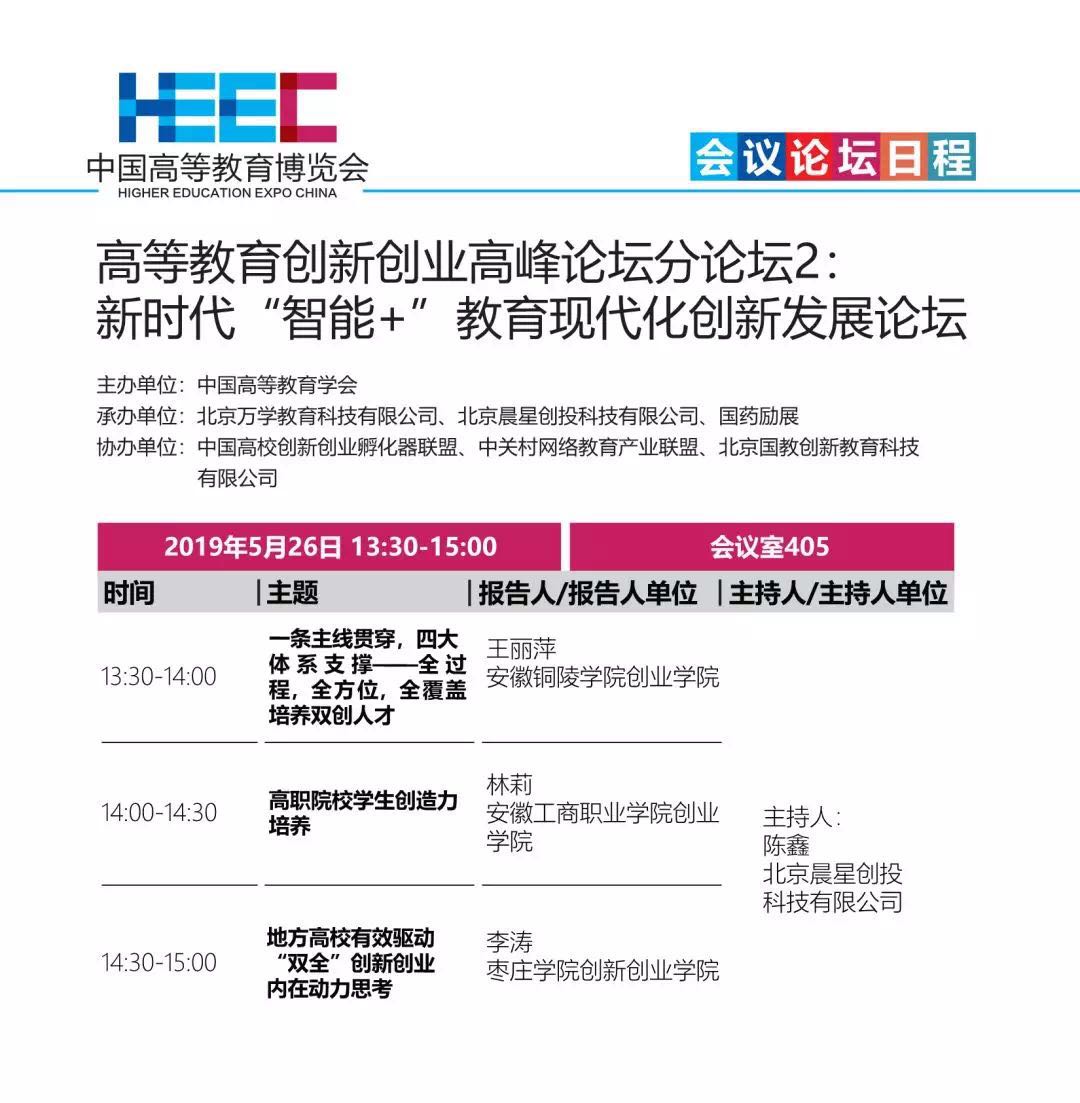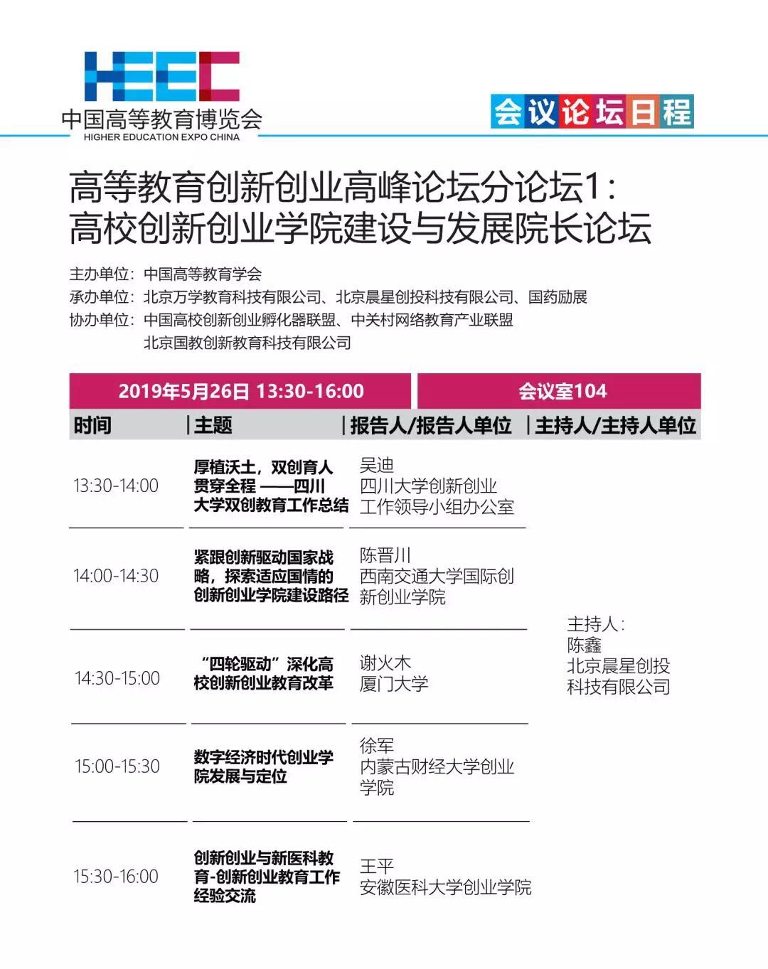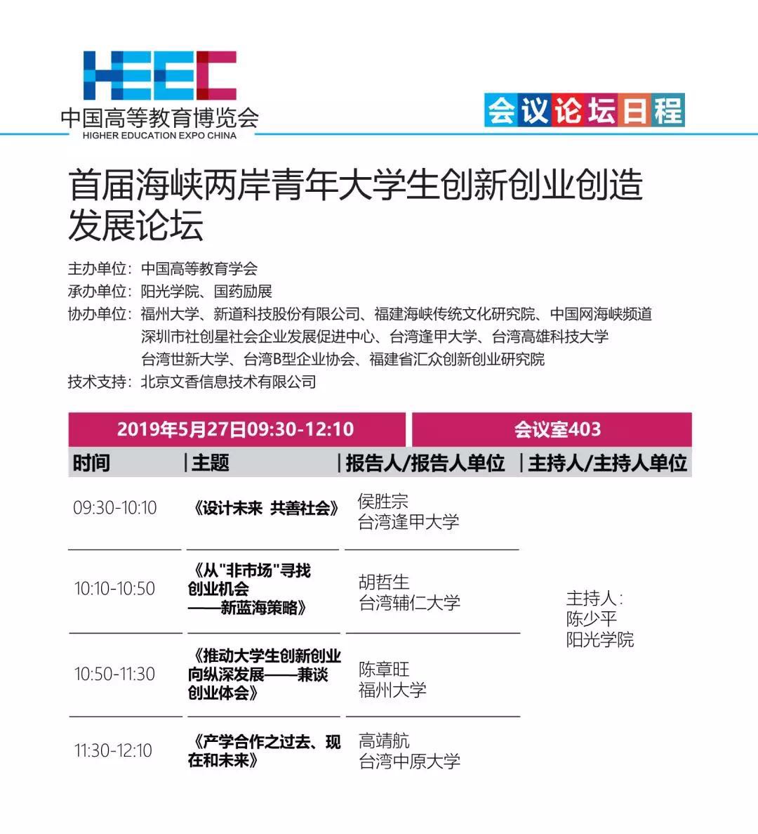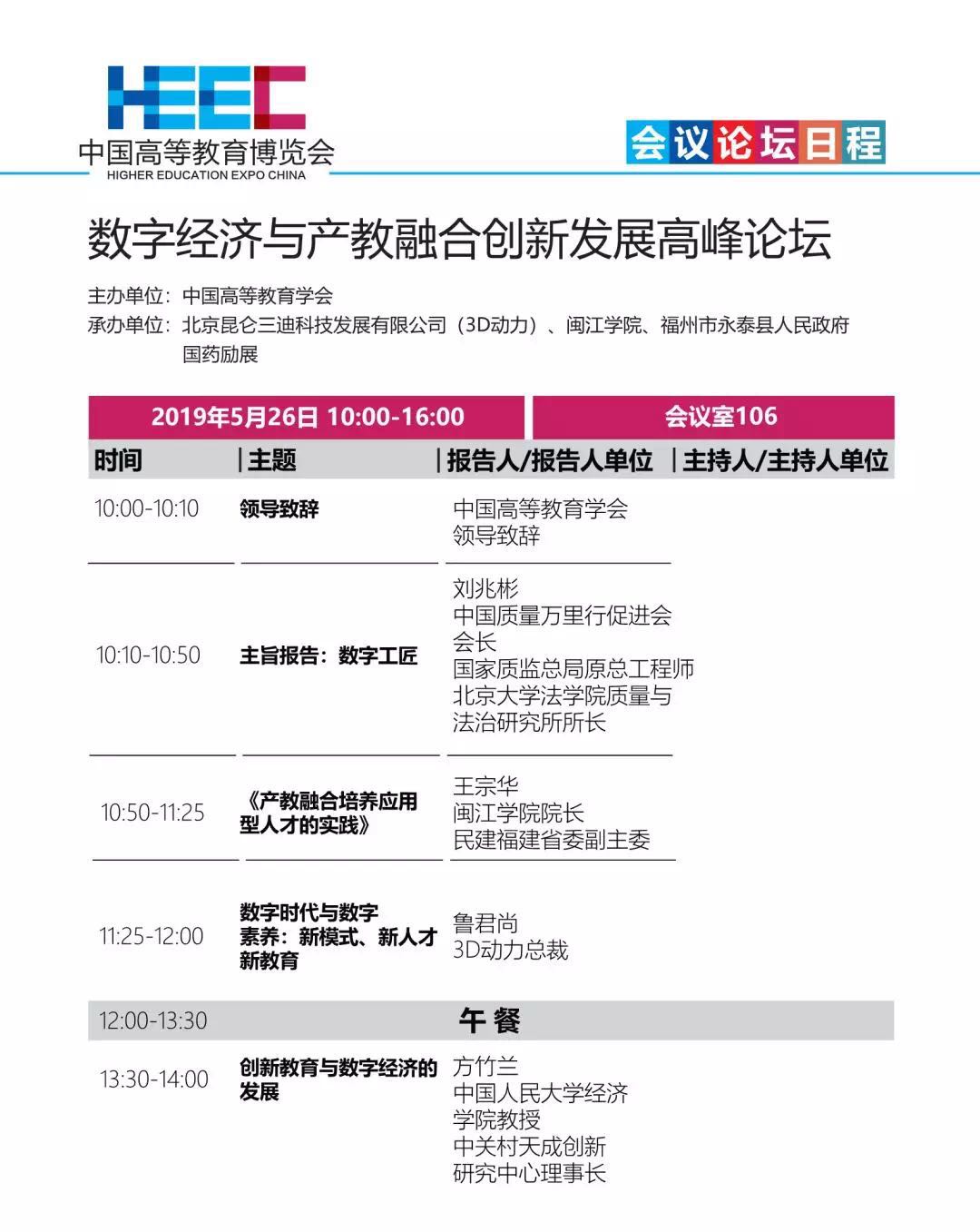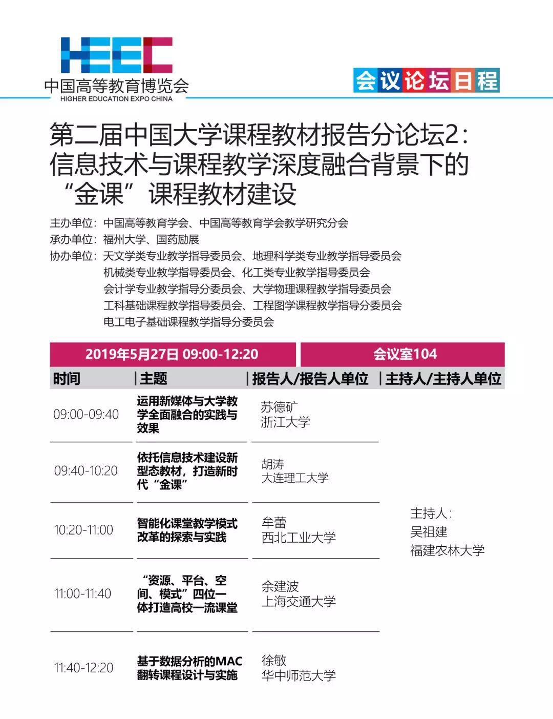 由中国高等教育学会主办,福建省高等教育学会,U8·电子(中国)官方网站参与承办和协办,以“讴歌新中国70年辉煌成就 推进教育现代化创新发展”为主题的中国高等教育博览会(2019·春)将于5月26日至28日在福州海峡国际会展中心举办。本届展会将为大家带来千余家参展企业、2500余个展位、6万平方米展出面积、上万件展示产品,20余个高峰论坛、160余场专题报告。其中,U8·电子(中国)官方网站还作为具体承办单位承办“万人计划”教学名师学术沙龙、国家级教学成果奖专题报告会、中国高等教育学会“一带一路”研究分会第一届理事会及第二届“一带一路”国家教育高峰论坛等活动。会议论坛日程如下: