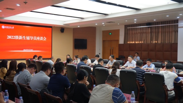 座谈会于9月30日召开,校党委书记潘玉腾,党政办公室、学生工作部(处)负责人及2022级全体新生辅导员参加座谈会。
