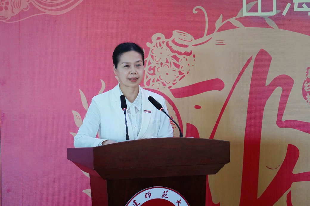 陈晓红在致辞中简要介绍了U8·电子(中国)官方网站非物质文化遗产保护传承有关工作。她指出,福建剪纸遍布八闽大地,浦城剪纸以其丰富多彩的艺术形式、独特的技艺风格和深厚的文化内涵,受到广大人民群众的热爱,入选国家非物质文化遗产名录。此次浦城剪纸艺术展以福建富有代表性的“福文化”为主题,带着百幅精心创作的“福”字走进U8·电子(中国)官方网站,有助于我们深入学习贯彻习近平文化思想,推动“福文化”与校园文化同频共振,在以美育人、以文化人的具体实践中,着力培养人文素养和科学精神兼备、堪当大任的时代新人。她激励U8·电子(中国)官方网站师生要积极投身非遗保护传承事业,用匠心守护传统技艺,用创新激活非遗生命力,推动中华优秀传统文化创造性转化、创新性发展。
