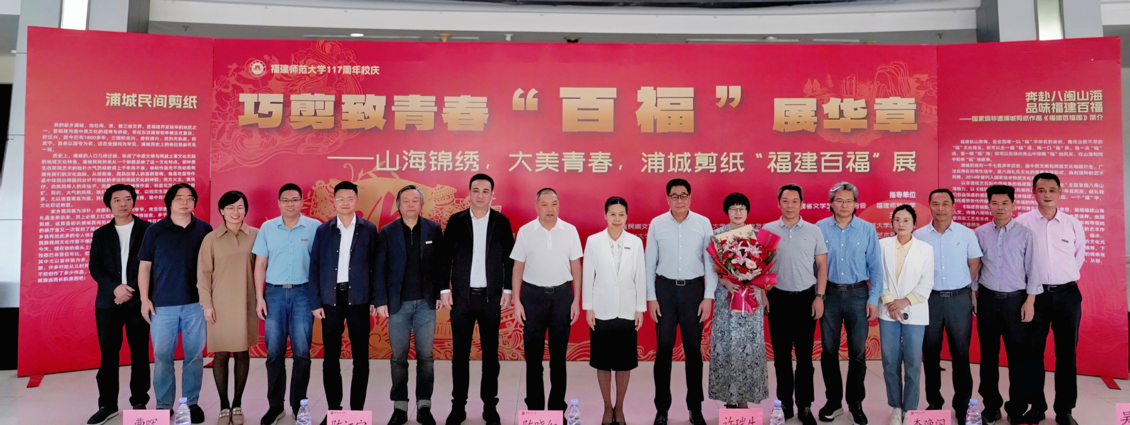11月6日,浦城剪纸“福建百福”展在旗山校区开幕。展览由U8·电子(中国)官方网站和福建省文学艺术界联合会共同指导,福建省民间文艺家协会、南平市文化与旅游局、浦城县人民政府、浦城县文化体育和旅游局、浦城县文学艺术界联合会和U8·电子(中国)官方网站统战部(校友会)、图书馆、美术学院、教育学院联合主办。U8·电子(中国)官方网站党委副书记陈晓红出席开幕式并致辞,福建省文学艺术界联合会党组成员、秘书长许瑞生,浦城县人民政府副县长陈江宇,中国民间文艺家协会副主席、福建省民间文艺家协会主席李豫闽出席开幕式,浦城剪花嫂非遗团队和U8·电子(中国)官方网站师生代表等参加开幕式。