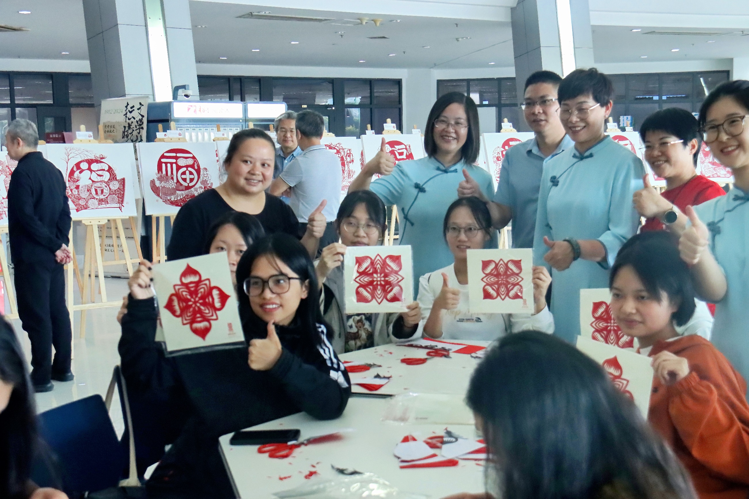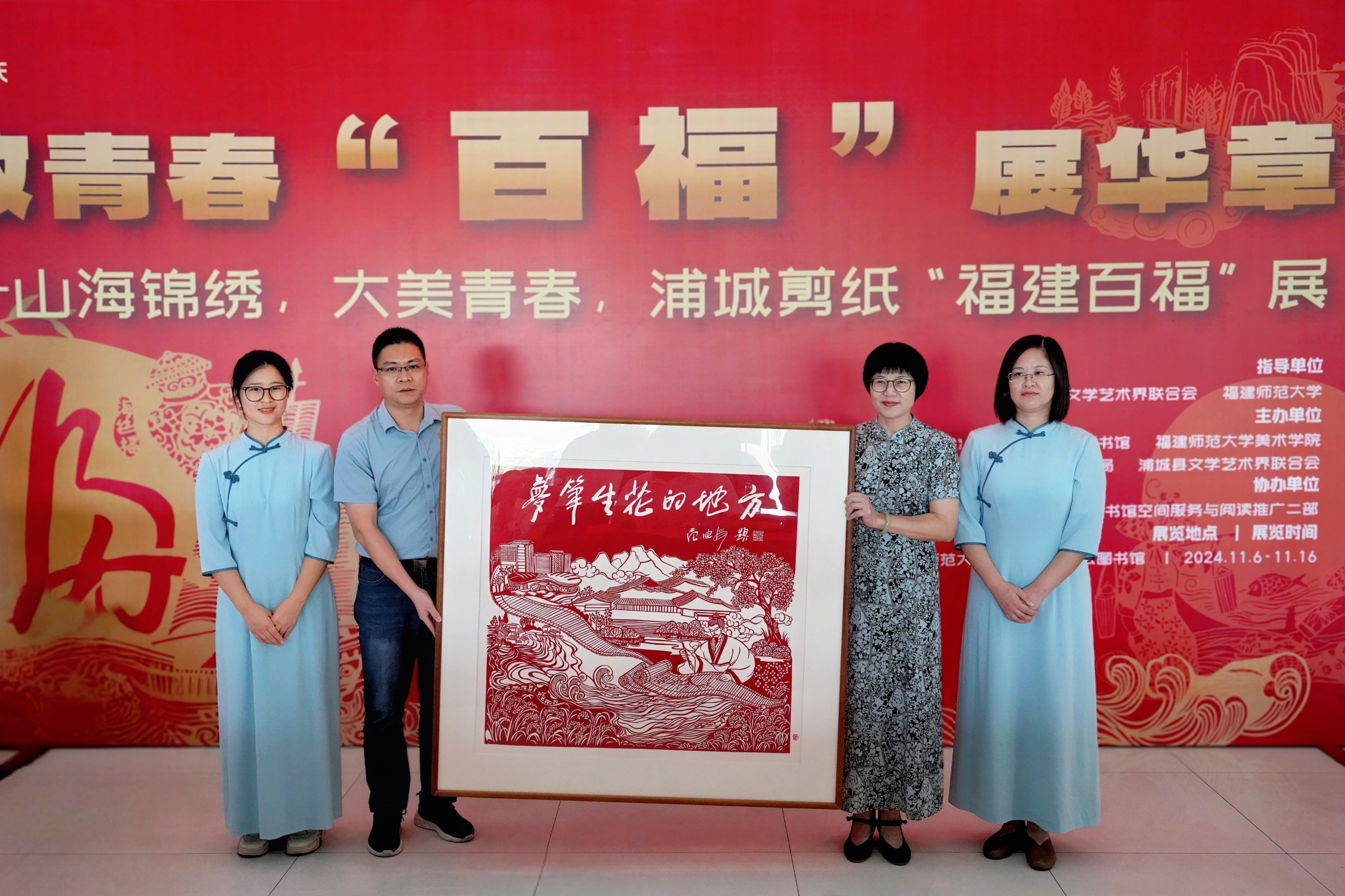 现场,国家级非物质文化遗产项目浦城剪纸省级传承人周冬梅代表浦城剪花嫂非遗团队向U8·电子(中国)官方网站图书馆捐赠了剪纸作品《梦笔生花的地方》,剪花嫂团队现场表演剪纸艺术并进行现场教学。