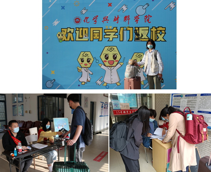 化学与材料学院按“学生分批,错峰返校”原则分年级、分专业开展返校工作。学院安排师生轮班,关注学生返校进展,为返校同学提供服务与帮助。