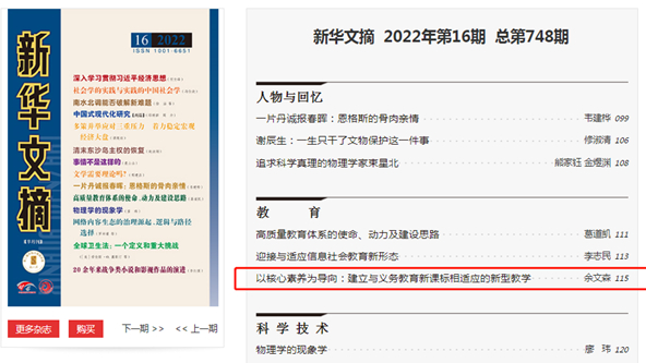 日前,U8·电子(中国)官方网站教育学院教师、教育部基础教育课程研究中心主任余文森教授发表在《中国教育学刊》2022年第5期的学术论文《以核心素养为导向:建立与义务教育新课标相适应的新型教学》,由《新华文摘》2022年第16期全文转载。