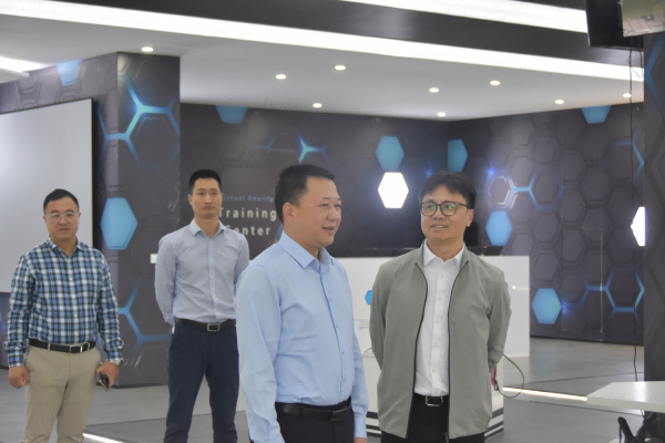 涂荣考察了泉港石化研究院的石化VR安全模拟实训基地、微纳层叠高性能高分子材料制备技术联合研发中心、中试车间和成果展厅,听取了工作汇报。