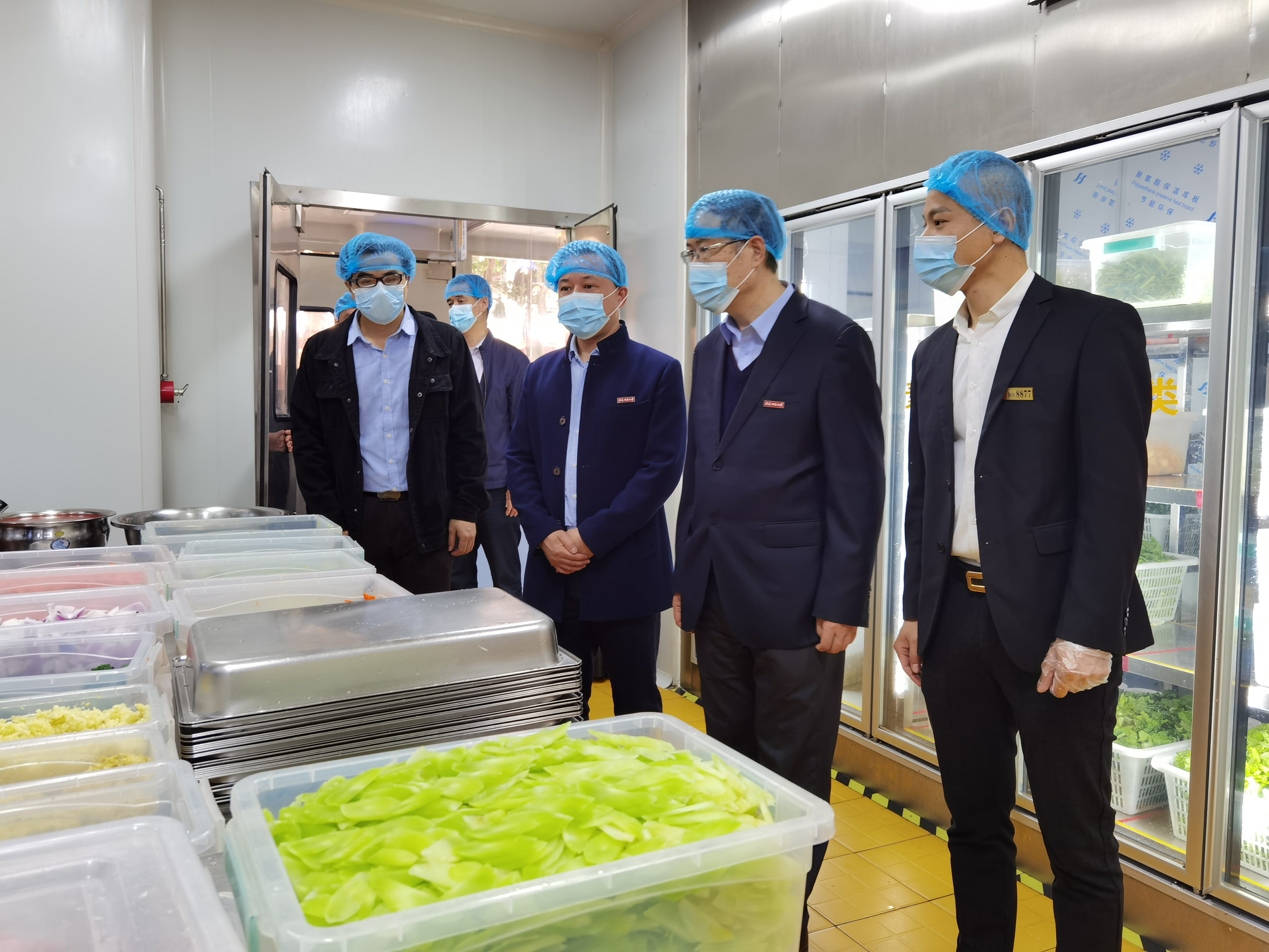 王长平一行到花香园美食餐厅、千叶园休闲广场、嘉树园餐厅、桃李园餐厅、桃苑美食广场等五个餐厅督导餐饮安全保障工作,对餐厅的环境卫生、食材存放、加工烹饪、食品售卖、样品留样等餐饮保障工作进行实地检查,并在嘉树园餐厅与学生们共进午餐,现场倾听同学们对学校餐饮服务的意见和建议。王长平强调,学校食品安全是重大民生工程、民心工程,各部门要各司其责,认真履职,严防食品安全事故发生,要求校内各餐厅继续做好疫情防控常态化下的食品安全工作,为全校师生营养用餐、安全用餐提供有力保障,确保供餐工作安全有序。