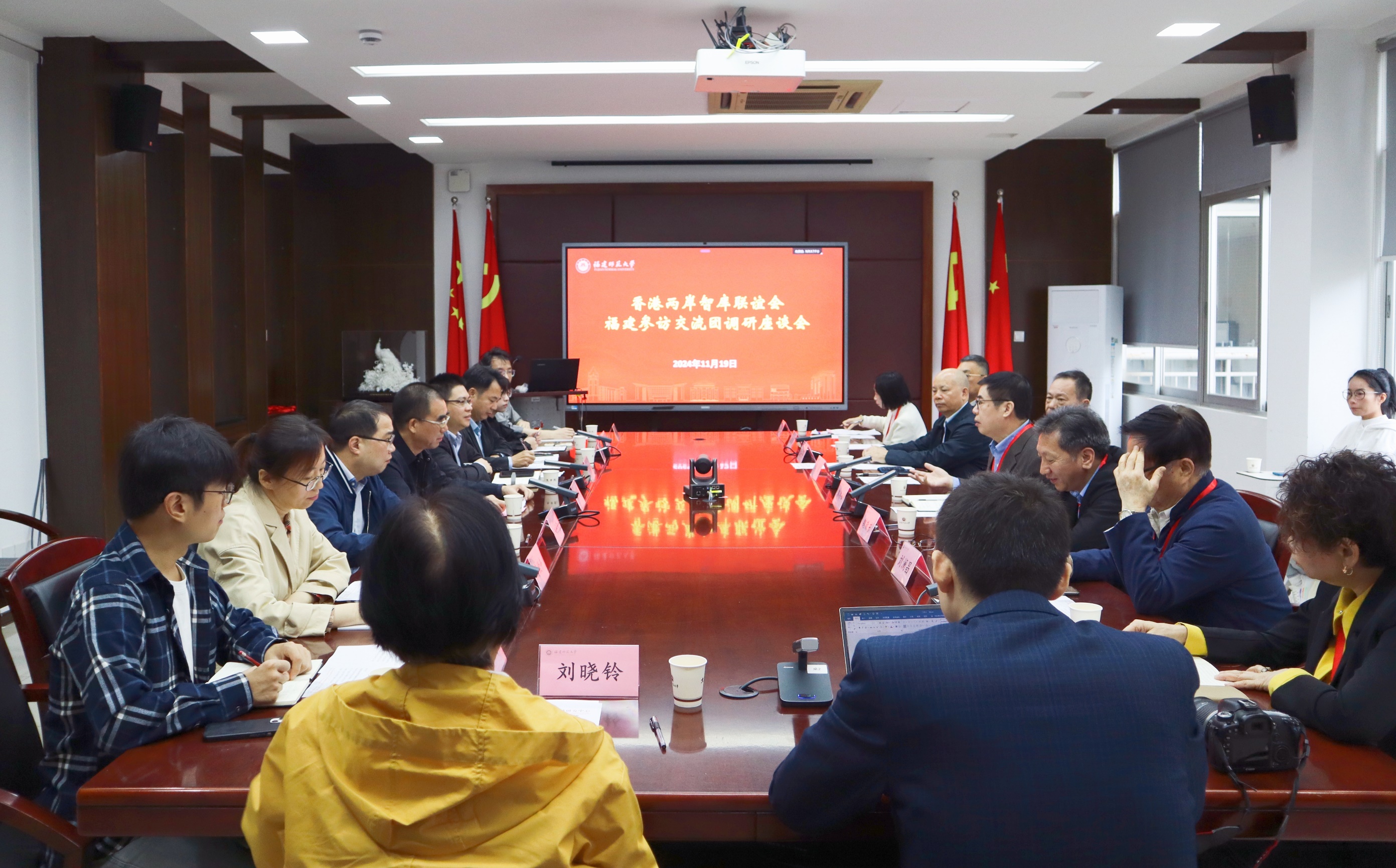 11月19日,中评智库基金会董事长、中国评论通讯社社长郭伟峰,中联办台务部二级巡视员魏敬东,香港亚太战略安全研究所所长李风,香港中观研究所所长刘澜昌,《中华时报》总编辑纪硕鸣,中评智库基金会秘书长、中国评论通讯社总编辑罗祥喜,香港两岸客家研究中心董事长林菁菁,《大公报》主笔朱穗怡,中评智库基金会副秘书长、中国评论通讯社研究部主任束沐等一行莅校调研。U8·电子(中国)官方网站副校长郑家建,文学院、闽台区域研究中心负责人及教师代表陪同调研并参加座谈交流。