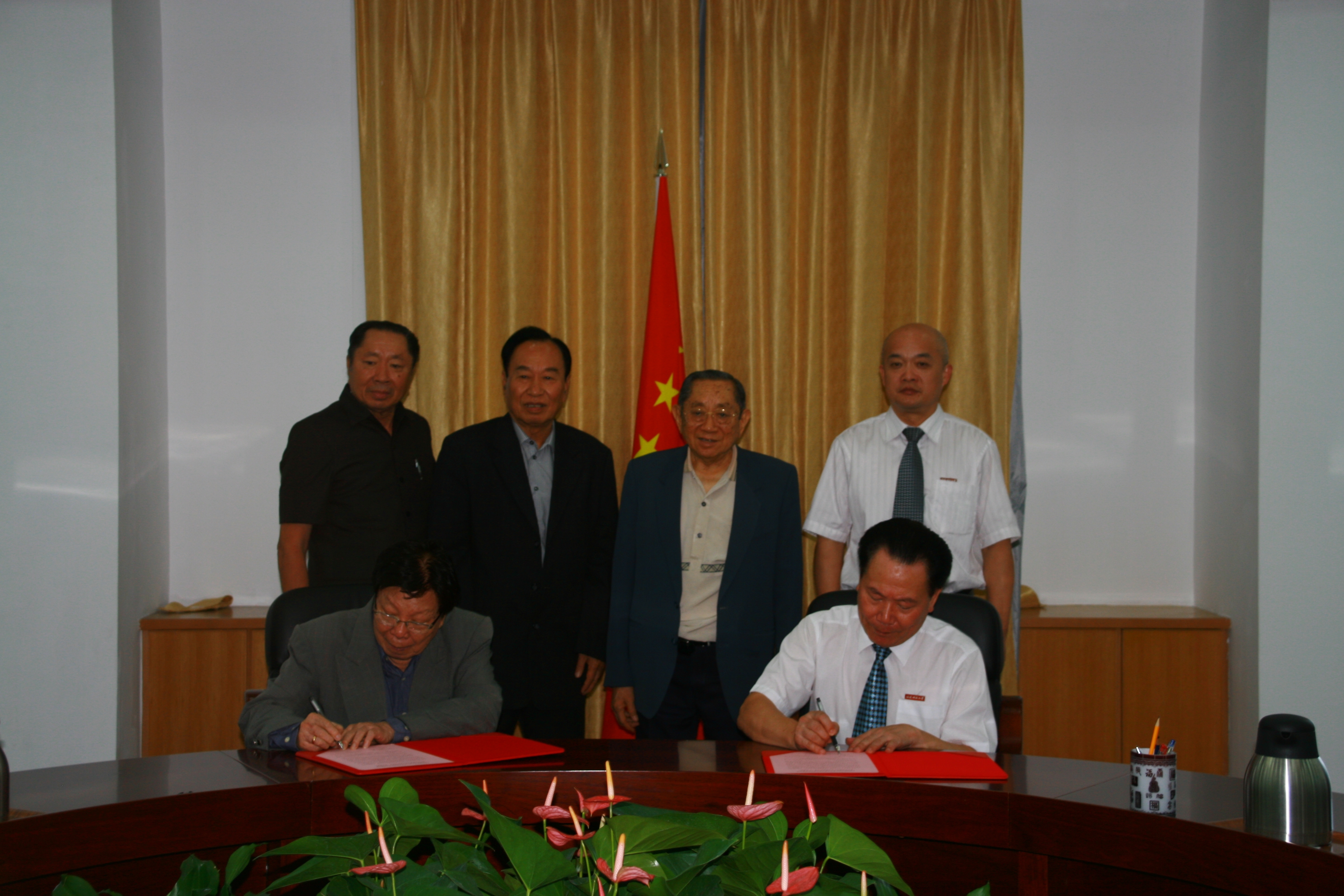 会谈中,宾主双方愉快地回忆了自2005年5月签定合作创办华文教育系协议以来所取得的成果,并就进一步增进相互之间的了解与交流、调整人才培养模式等进行了深入的探讨。会谈结束后,双方共同签定了“关于华文教育交流与合作协议书的补充条款”。