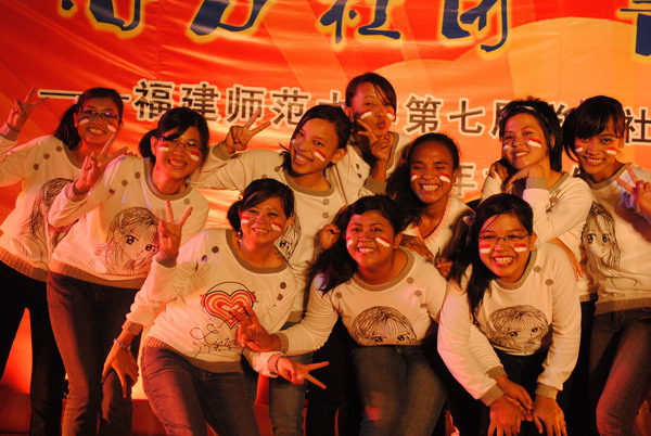 四列焰火直射天空,两条火龙随之喷起,晚会在《中国话》的歌伴舞表演中开始。随后,炫彩地带学社的《风华绝代》彩妆秀展现四组风格不同的装扮,在悠扬的音乐中彰显古典韵律;吉他协会的《像风一样自由》营造了轻松和谐的氛围,展现六弦琴的魅力;跆拳道协会的表演将跆拳道与中华文化巧妙地结合在一起,以起源于黎族的传统游戏丢手绢为框架,轮流展示了各自的拿手绝活。“COSPLAY”、“轮舞青春”、“Top Star爱情宣言”、“律动”等各个节目将晚会主题演绎得异彩纷呈、淋漓尽致。最后,随着歌曲《青春中国》的奏响,开幕式在对祖国的祝福与对社团文化巡礼月的期待中结束。