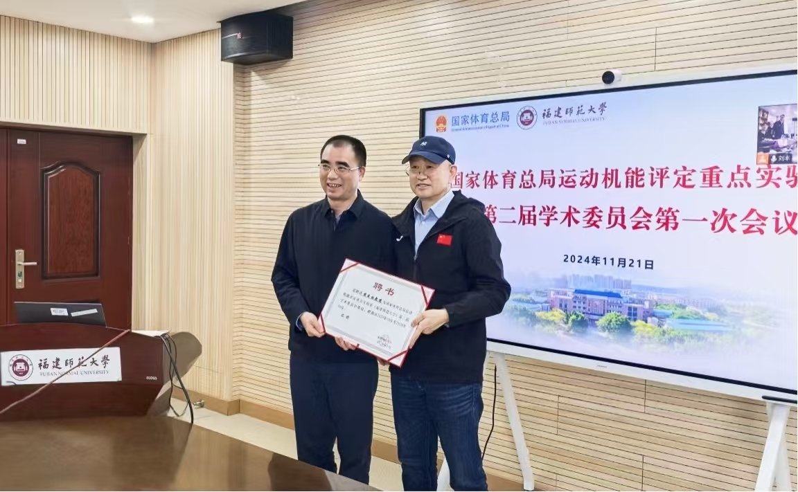 会议于11月21日在旗山校区以线上线下相结合的方式召开。新一届学术委员会主任、上海体育大学原校长陈佩杰教授,新一届学术委员会副主任、国家体育总局运动医学研究所原所长谢敏豪教授,副校长郑家建,以及来自国内知名高校的专家学者、U8·电子(中国)官方网站科学技术处、体育科学学院负责人及实验室骨干成员参加会议。科技处负责人代表学校宣读了第二届学术委员会组成人员名单,郑家建向委员们颁发聘书。