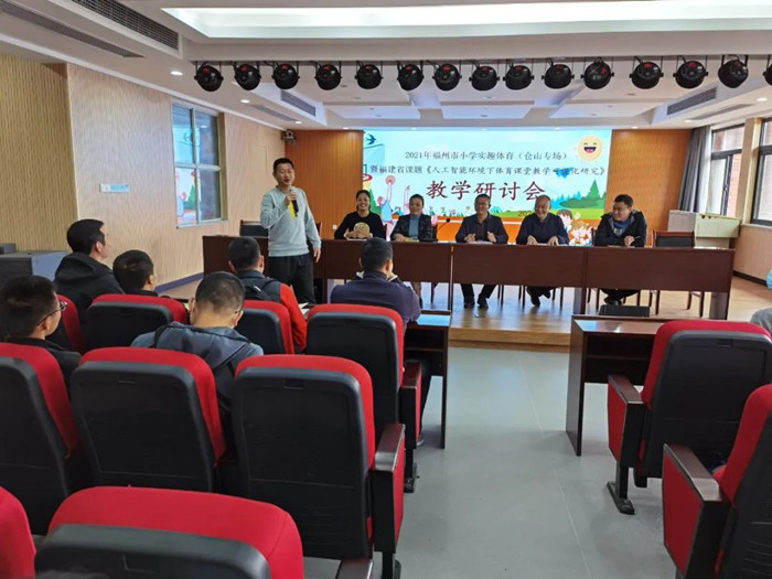 在课题研讨环节,《人工智能环境下体育课堂教学可视化研究》课题主持人、附属小学教师肖磊阐述了课题研究的相关情况以及两节观摩课的设计思路。与会人员对观摩课给予高度评价,围绕课题展开了深入研讨与交流。
