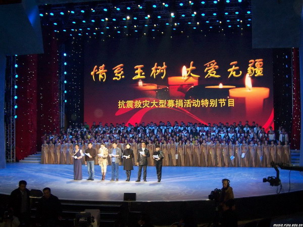 4月20日晚,由中宣部、民政部、国家广电总局、中国红十字总会、中华慈善总会联合主办,中央电视台承办的《情系玉树,大爱无疆——抗震救灾募捐活动特别节目》,在中央电视台1号演播大厅举行。李长春、回良玉、刘云山、刘延东等党和国家领导人出席活动并捐款,表达了对灾区人民的深情关怀。