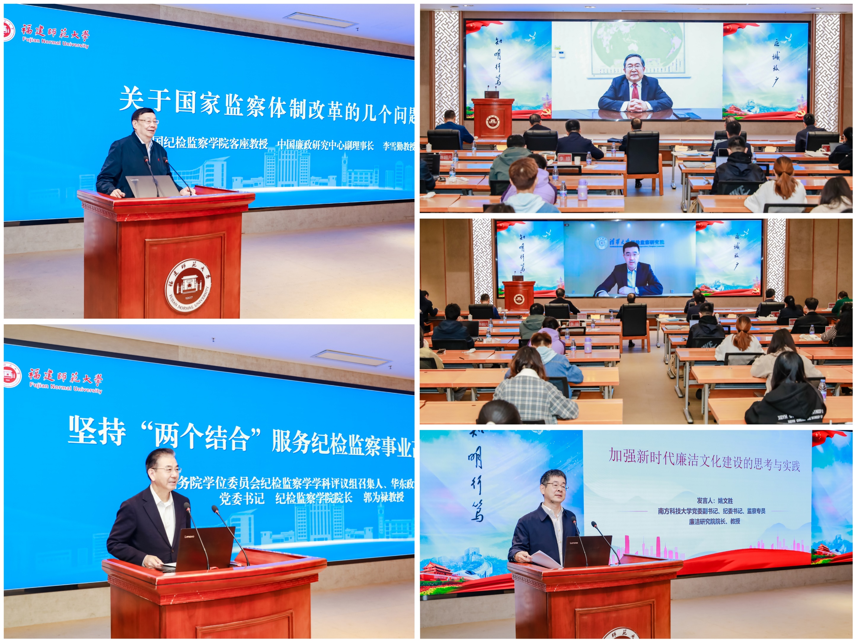 研讨会于11月23日在旗山校区举行。中国纪检监察学院客座教授、中国廉政研究中心副理事长李雪勤,国务院学位委员会纪检监察学学科评议组召集人、华东政法大学党委书记、纪检监察学院院长郭为禄教授,中国社会科学院学部委员、中国社会科学院法学研究所/国际法研究所联合党委书记、中国社会科学院法学研究所所长、中国社会科学院大学法学院院长莫纪宏研究员,国务院学位委员会纪检监察学学科评议组成员兼秘书长、清华大学党委副书记、国际反腐败学院理事会理事过勇教授,南方科技大学党委副书记、纪委书记、廉洁研究院院长姚文胜教授出席研讨会,来自清华大学、中国人民大学、中国政法大学、华东政法大学、北京科技大学、湘潭大学、福建省委党校(福建行政学院)专家,以及U8·电子(中国)官方网站纪检监察学科师生代表等100多人参加研讨会。U8·电子(中国)官方网站党委书记潘玉腾教授出席开幕式并致辞,福建省纪检监察协会副会长、校纪委书记林月恩研究员主持研讨会。