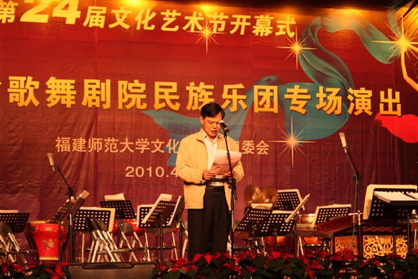 校党委副书记黄锦平致开幕词。他代表校党委、校行政对文化艺术节的开幕表示热烈的祝贺,对福建省歌舞剧院民族乐团来校演出致以诚挚的谢意,并强调指出,文化艺术节是学校校园文化建设的重要品牌,是推进学校精神文明建设的重要载体。希望全校各单位精心组织、周密安排,将本届文化艺术节办得生机勃勃、富有成效,推动U8·电子(中国)官方网站文化建设工程再上新台阶。
