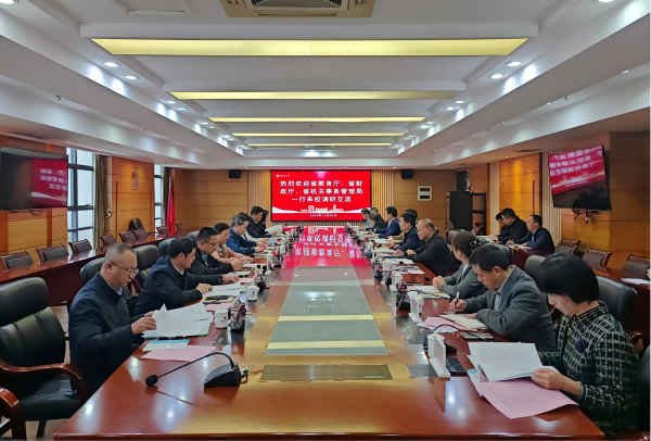 1125日,省教育厅财务处二级调研员陈雄、财政厅资产处二级调研员陈尚斌、机关事务管理局国资处处长李亿峰等一行8人莅校开展国有资产管理调研交流。学校党政办公室、财务处、资产管理处、后勤管理处、基建处、实验室与设备管理处、产教融合发展中心、资产经营有限公司等单位负责人参加座谈交流。
