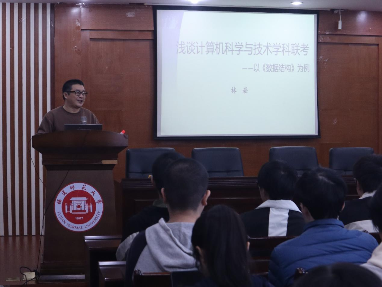 11月26日,计算机与网络空间安全学院在学院大楼会议室召开2025年考研计算机科学与技术学科联考专业课备考指导会。学院院务委员、工会主席、计算机科学与技术学位点负责人林崧教授受邀为2021级考研学生作专题讲座,活动由院团委书记赖敏主持。