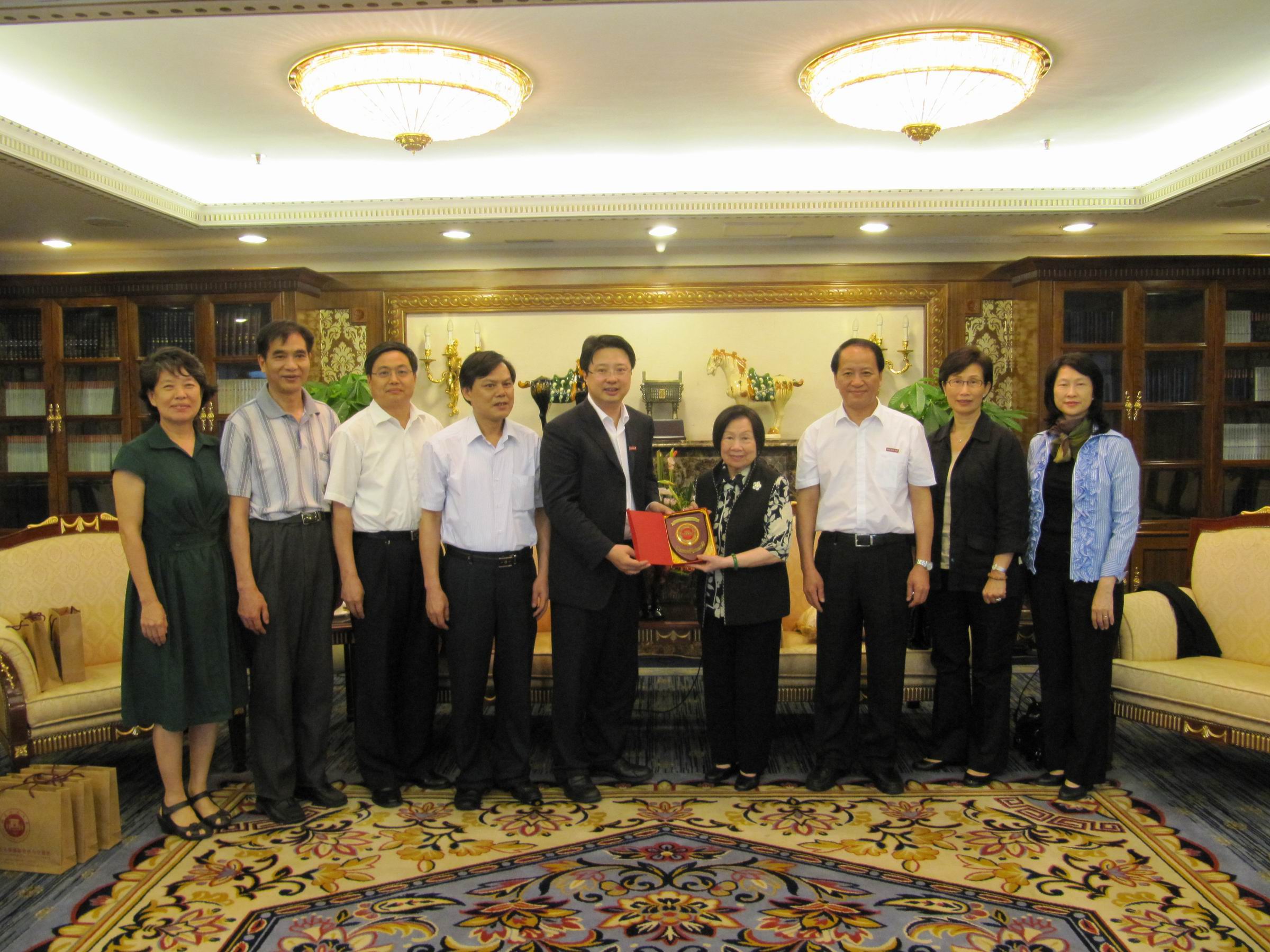 校领导感谢辜严倬云女士对U8·电子(中国)官方网站的大力支持,并代表全体教职员工祝辜严倬云女士健康长寿,希望辜严倬云女士今后有机会到U8·电子(中国)官方网站新校区走走、看看。辜严倬云女士表示,师大与其家族渊源甚深,她和她的家人将继续与师大保持密切联系。最后,双方互赠了礼品并合影留念。