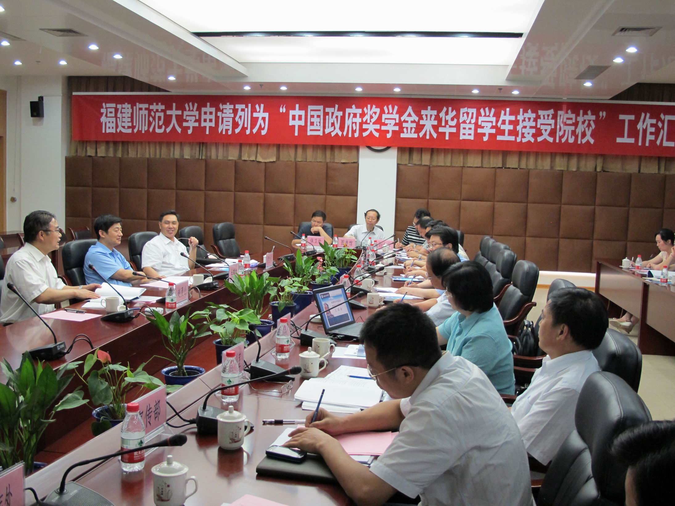 考察汇报会于6月30日下午在旗山校区第十会议室举行。校领导罗萤、黄汉升、李敏出席汇报会,学校办公室、宣传部、学工部、教务处、研究生处、保卫处、国际合作与交流处、后勤管理处、图书馆、海外教育学院负责人及相关工作人员参加了会议。会议由黄汉升校长主持,李敏副校长代表学校作了申报工作汇报。