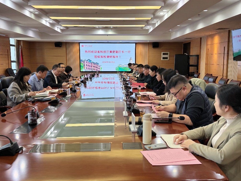 座谈会上,吴剑锋代表学校对黄舒一行来校调研指导表示热烈欢迎,向省科技厅长期以来关心支持学校改革发展表示衷心感谢,并简要介绍了学校总体发展情况。黄舒听取了U8·电子(中国)官方网站近三年来承担省级科技计划项目情况介绍,重点了解省属公益类科研院所专项与创新战略研究项目情况,他指出,U8·电子(中国)官方网站是一所具有悠久历史和深厚文化底蕴的高等学府,希望学校在创新战略研究方面继续发挥大校优势,注重政策运用与创新投入,与最优者“对标”、与最强者“比拼”、与最快者“赛跑”,为我省高质量发展作出更大贡献。最后,双方就2025年度省创新战略研究项目指南和下一轮省属公益类科研院所专项评估工作进行交流探讨。