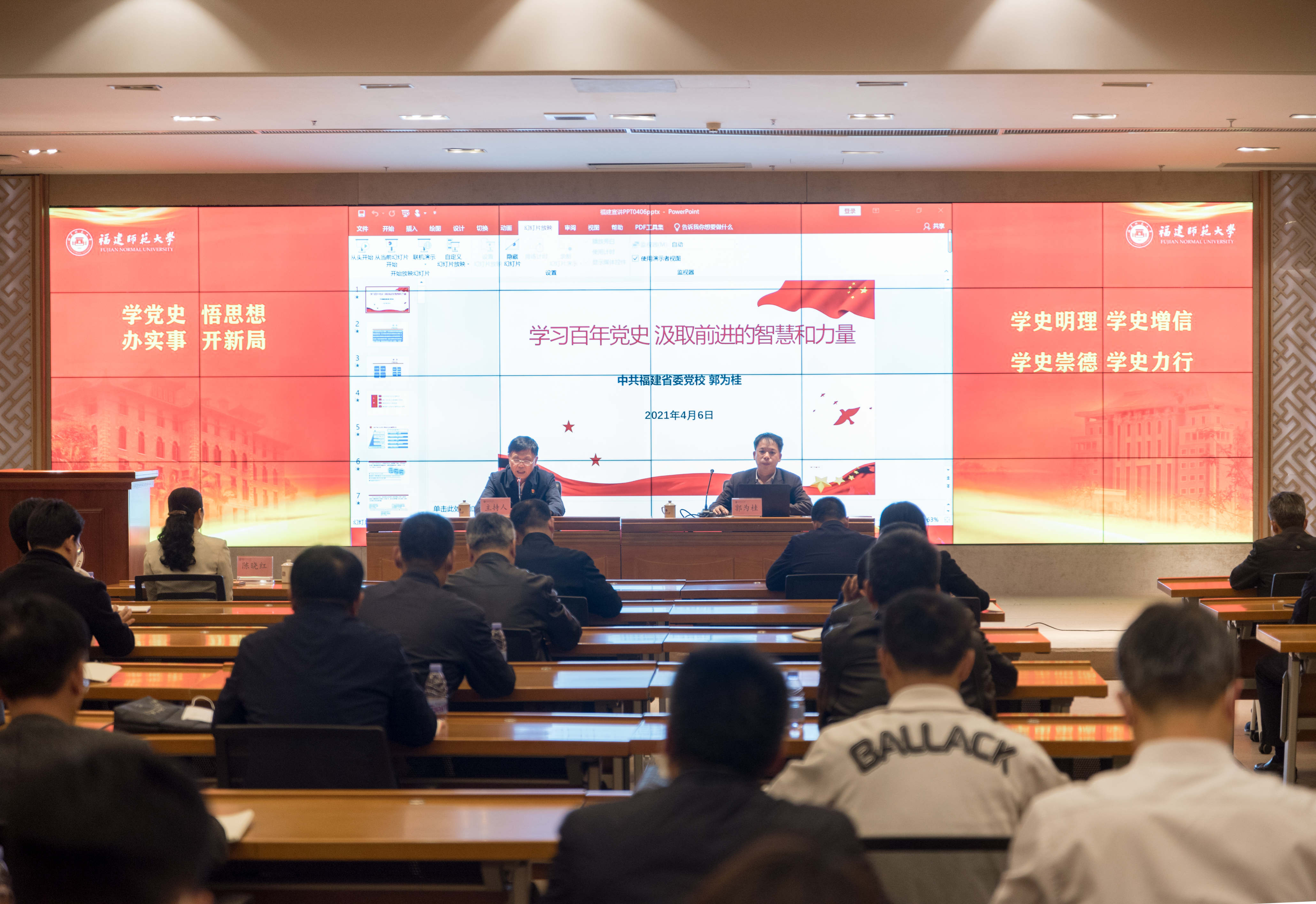 按照省委的统一安排,党史学习教育省委宣讲团宣讲报告会于4月6日在U8·电子(中国)官方网站举行。省委宣讲团成员、省委党校党建教研部主任、福建省中共党史学会会长郭为桂教授为U8·电子(中国)官方网站领导班子成员、中层干部、师生代表作了题为《学习百年党史汲取前进的智慧和力量》的宣讲报告。