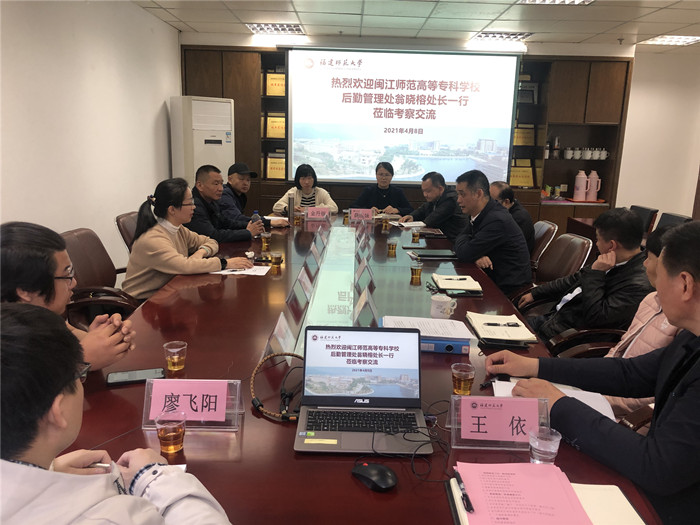 近日,闽江师范专科高等学校后勤管理处处长翁晓榕一行来U8·电子(中国)官方网站后勤管理处、后勤服务集团调研交流。后勤管理处副处长兼后勤服务集团副总经理(主持工作)张栋、后勤服务集团副总经理黄滨,以及相关科室中心负责人参加了座谈会。