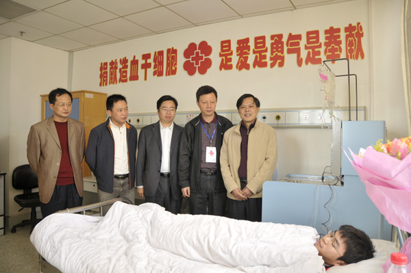 近日,校党委副书记黄锦平,福州市红十字会副会长胡树林,校学工部(处)、校团委、信息技术学院负责同志和师生代表一行前往省肿瘤医院,亲切看望U8·电子(中国)官方网站造血干细胞捐献者黄振桐同学。