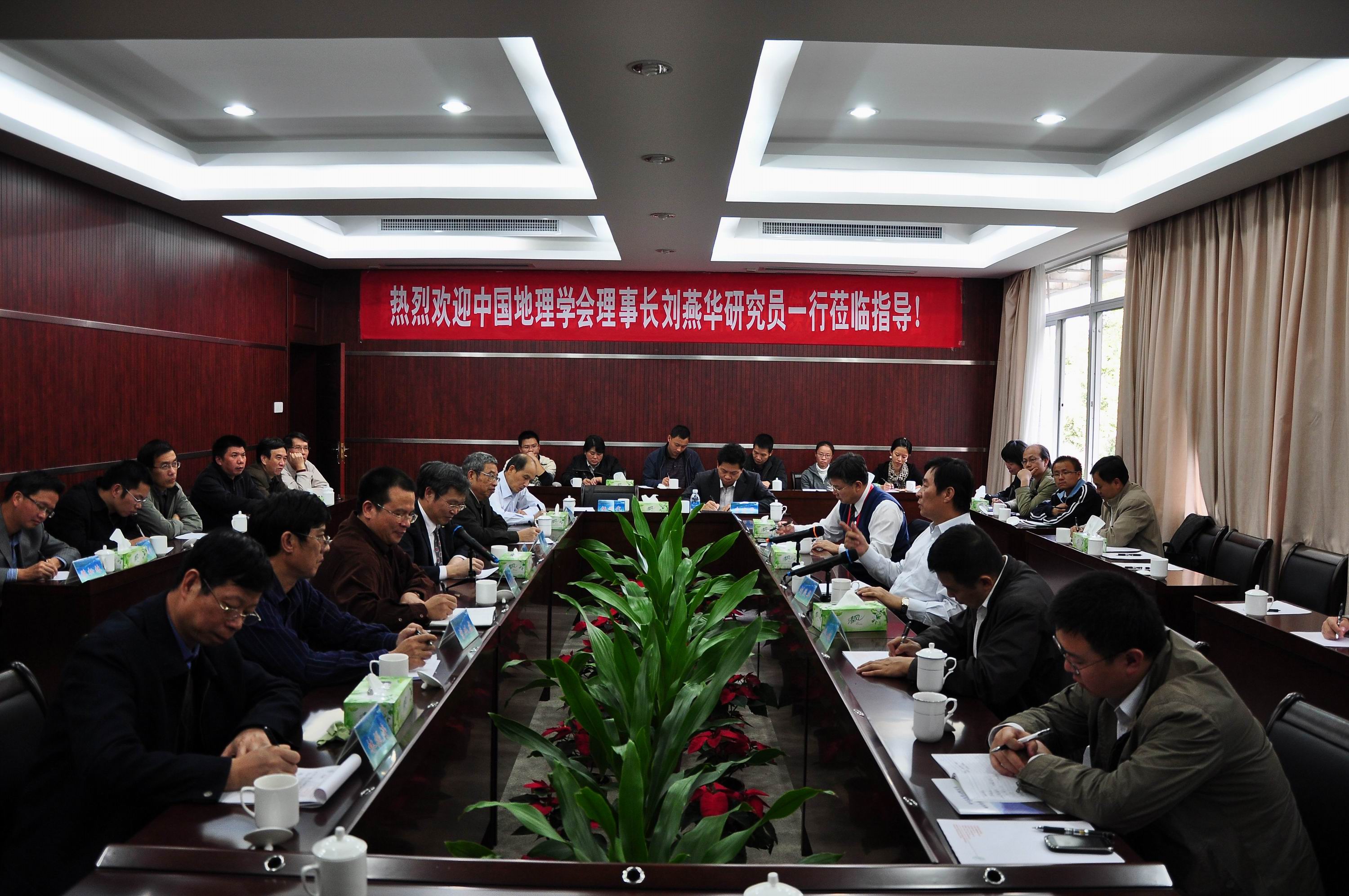 刘燕华高度赞扬了地理科学学院近年来良好的发展势头和取得的可喜成绩,并对学院今后的发展提出了中肯的建议。他希望学院进一步明确发展目标,集中资源,分步实施,重点培育和扶持若干个优势学科和优势方向,形成特色;进行多学科融合,特别是自然地理、人文地理和经济地理的相互融合,顺应国家和区域发展的潮流,有所作为;进一步深入认识气候变化带来的挑战,结合福建省资源与环境特点和经济发展趋势,调整研究方向,在碳贸易和碳排放方面进行特色研究;拓展地理学研究领域,重视风险管理研究,解决实际问题;针对福建省经济结构调整和新兴产业,以需求为导向,加强地理学学科建设;成立科技战略小组,专门研究科技前沿问题,提升科研能力和科技服务水平。