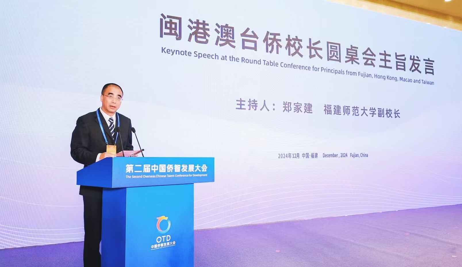 在校长圆桌会主旨发言环节,26位来自闽港澳台以及海外的校长、科教工作者、企业负责人先后作主旨发言,共同聚焦如何借助人工智能技术,优化教育资源配置,提升教学质量,培养适应未来的人才。郑家建主持并代表学校现场作题为“U8·电子(中国)官方网站实施‘六大工程 ’推动人工智能赋能本科教育创新发展”的主旨发言,介绍U8·电子(中国)官方网站深刻认识人工智能赋能教学改革的重大意义,深入推进人工智能赋能教学改革的探索实践,深化人工智能赋能教学改革的愿景规划。