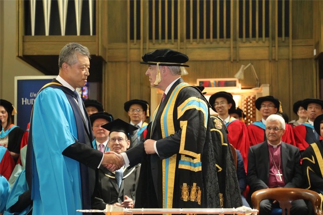 李宝银书记一行还应邀出席并见证了中国驻英国大使刘晓明荣誉博士授予仪式,聆听了刘晓明大使的演讲——《深耕细作育英才,砥砺前行谋未来》。刘晓明大使指出:“哈德斯菲尔德大学与中国已经结下不解之缘。”哈德斯菲尔德大学“在未来中英教育交流合作中将发挥重要作用。”哈德斯菲尔德大学名誉校长英国约克公爵安德鲁王子、克莱恩校长、哈德斯菲尔德市市长侯赛因、曼彻斯特总领事馆原总领事郑曦、中国驻英国大使馆教育处王永利公参、哈德斯菲尔德大学毕业生亲友以及U8·电子(中国)官方网站代表团等200余人参加了仪式。在典礼开始之际,克莱恩校长热情洋溢地介绍了与U8·电子(中国)官方网站合作举办的通信工程专业本科中外合作办学项目,并对联合申报中外合作办学机构寄予了厚望。
