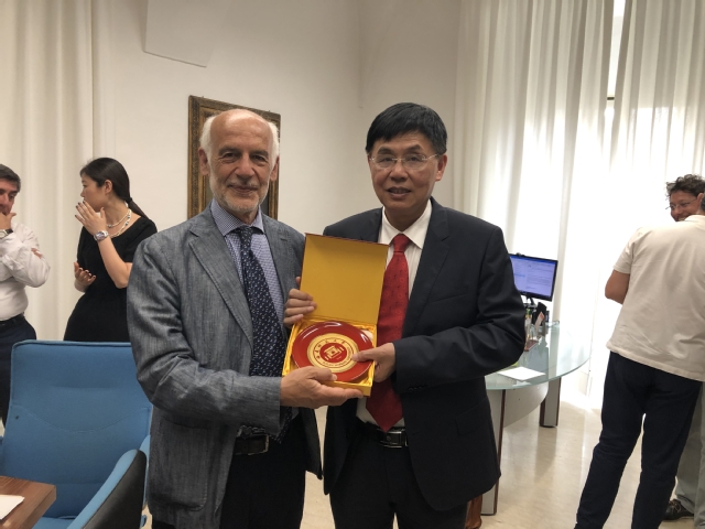 李宝银书记向卡塔尼亚大学赠送U8·电子(中国)官方网站校牌