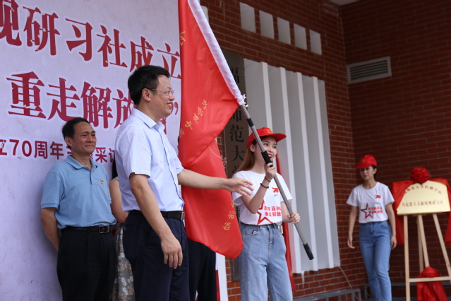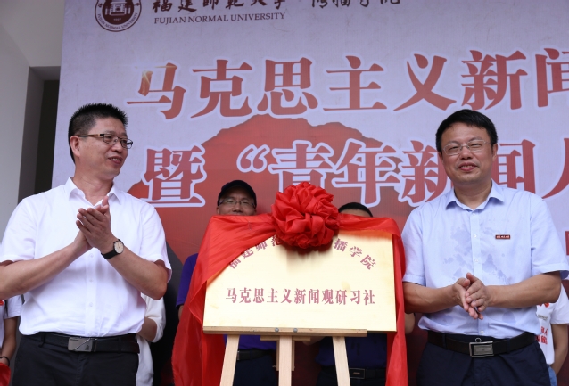 省委宣传部副巡视员卓少锋、校党委副书记潘玉腾为“U8·电子(中国)官方网站传播学院马克思主义新闻观研习社”揭牌。参与活动的领导来宾分别为“青年新闻人重走解放路”主题采访活动五支采访队和大学生暑期“三下乡”社会实践队授旗。