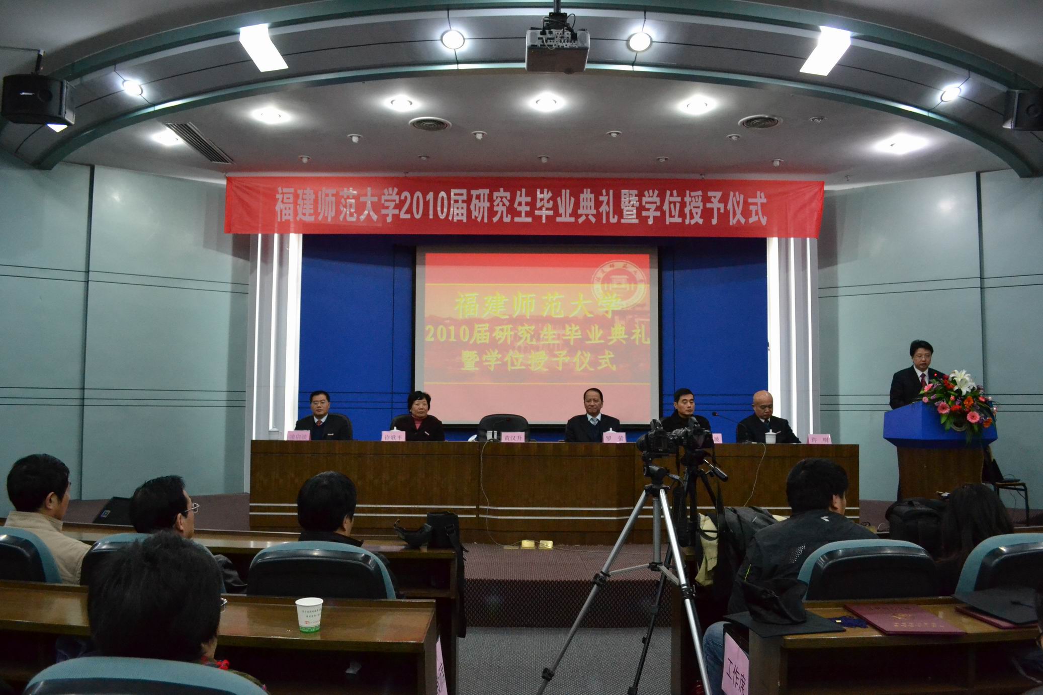 典礼在庄严的国歌声中拉开帷幕。黄汉升校长在致辞中首先对今年下半年毕业的5位博士研究生、5位全日制硕士研究生和431位非全日制硕士研究生表示衷心的祝贺,向付出辛勤劳动的全体研究生指导教师致以崇高的敬意。
