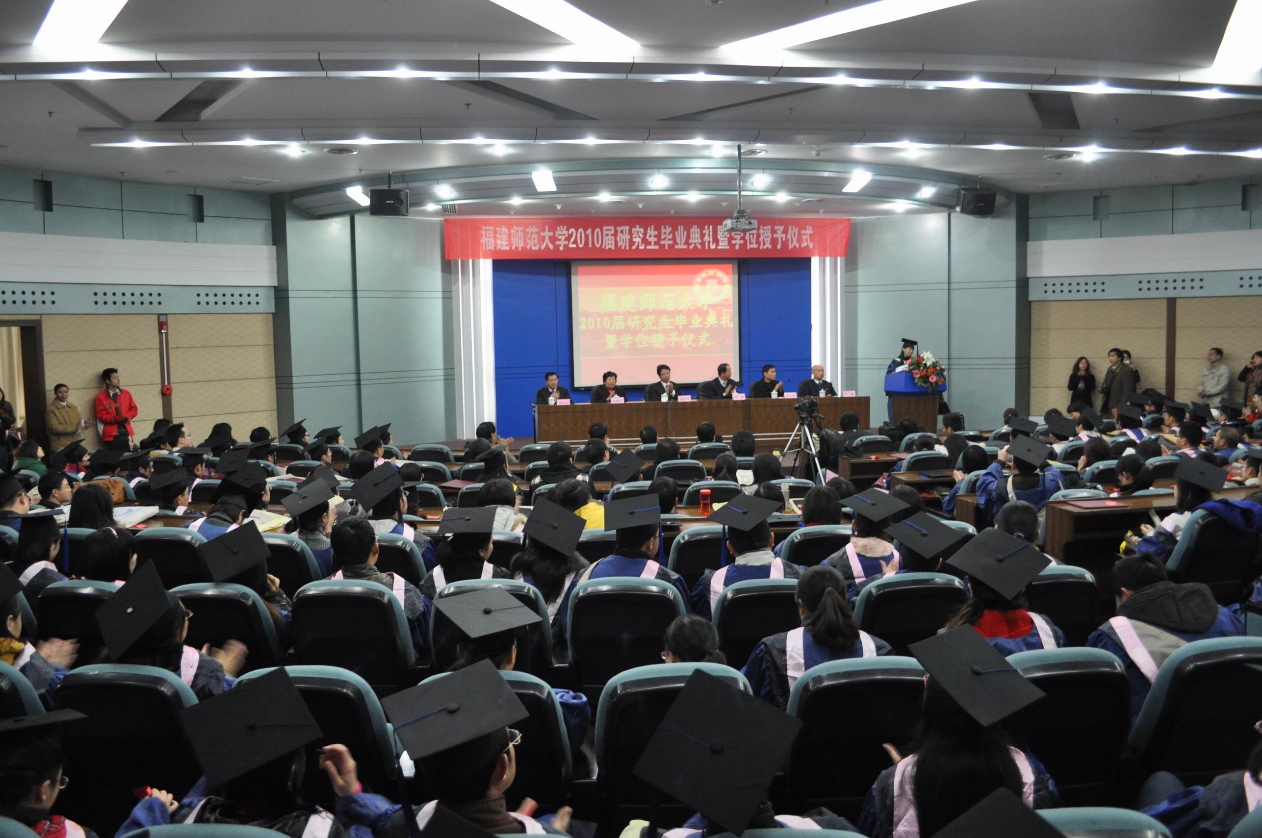 最后,黄汉升校长一一为获得博士、硕士学位的2010届研究生颁发学位证书并合影留念,现场气氛隆重、热烈。