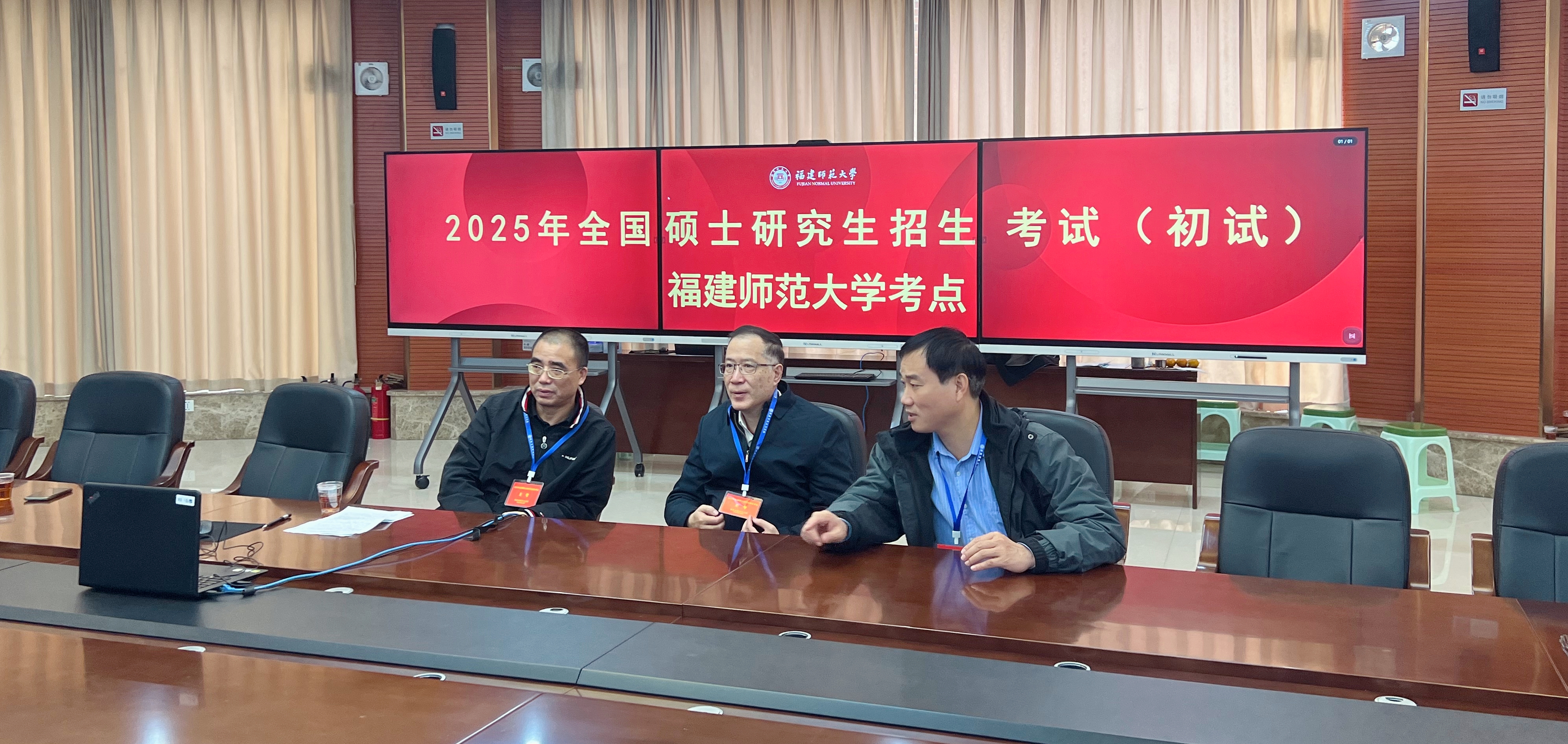 学校高度重视2025年研考工作,成立以校长王长平为组长、副校长郑家建为常务副组长的考务工作领导小组,以校党委常委、纪委书记、省监委驻福建师大监察专员林月恩为组长的纪检监察小组,多次召开专题会议研究组考备考、安全保障和考生服务等工作。考试期间,王长平带队在考试指挥中心现场指导监督,并看望慰问考务工作人员;郑家建住校值守、靠前指挥,全程在考试现场指导工作;有关职能部门联合驻守、集中办公,共同护航平安研考。