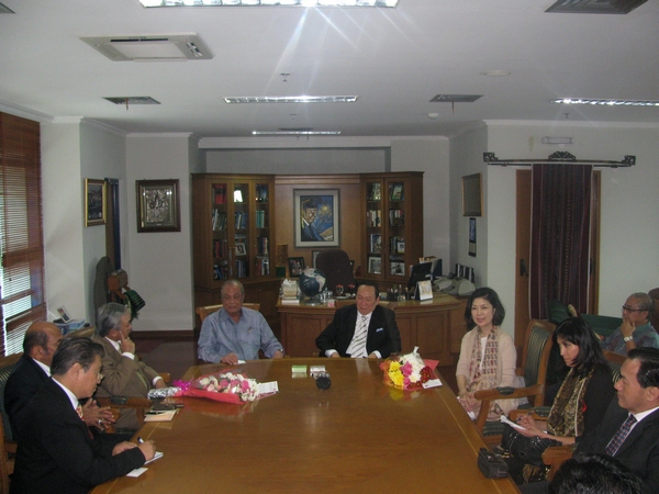 雅加达当地时间2011年2月11日上午10时,印尼著名侨领黄双安拿督斯里伉俪一行11人访问了印尼阿拉扎大学孔子学院。阿拉扎大学校长祖哈教授、副校长卢比斯博士、文学院院长穆鲁尼教授及文学院教师代表、孔子学院全体中方人员到场热情迎接并全程陪同参观了孔子学院及阿拉扎大学校园。